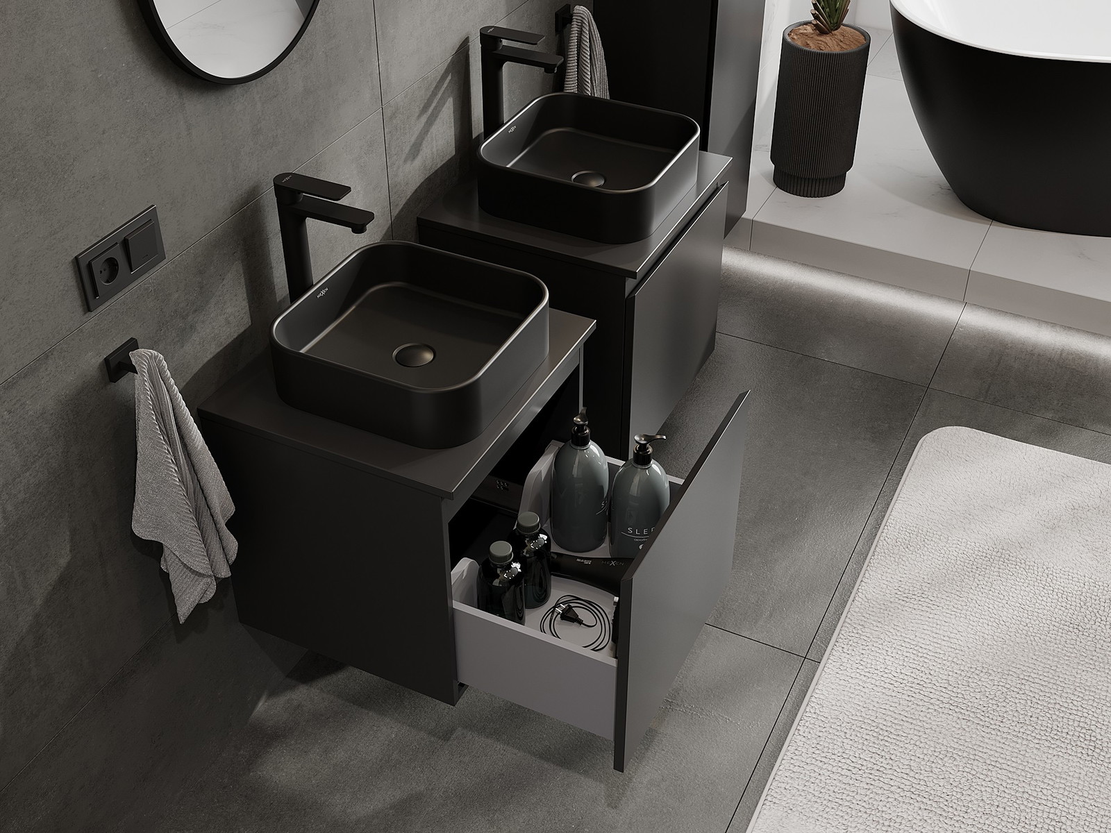 Mexen Orio шкаф за баня под мивка 50 см с плот, 1 чекмедже, черен мат - 91A10-05047-1-BFC71
