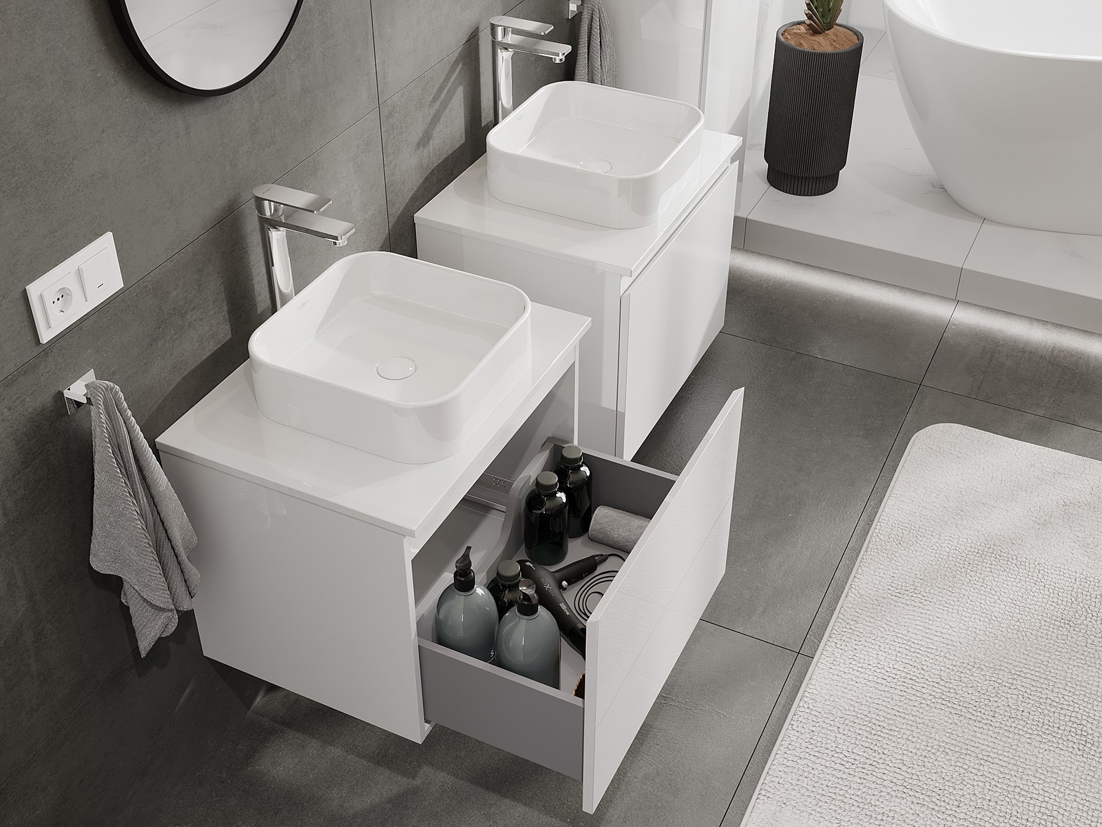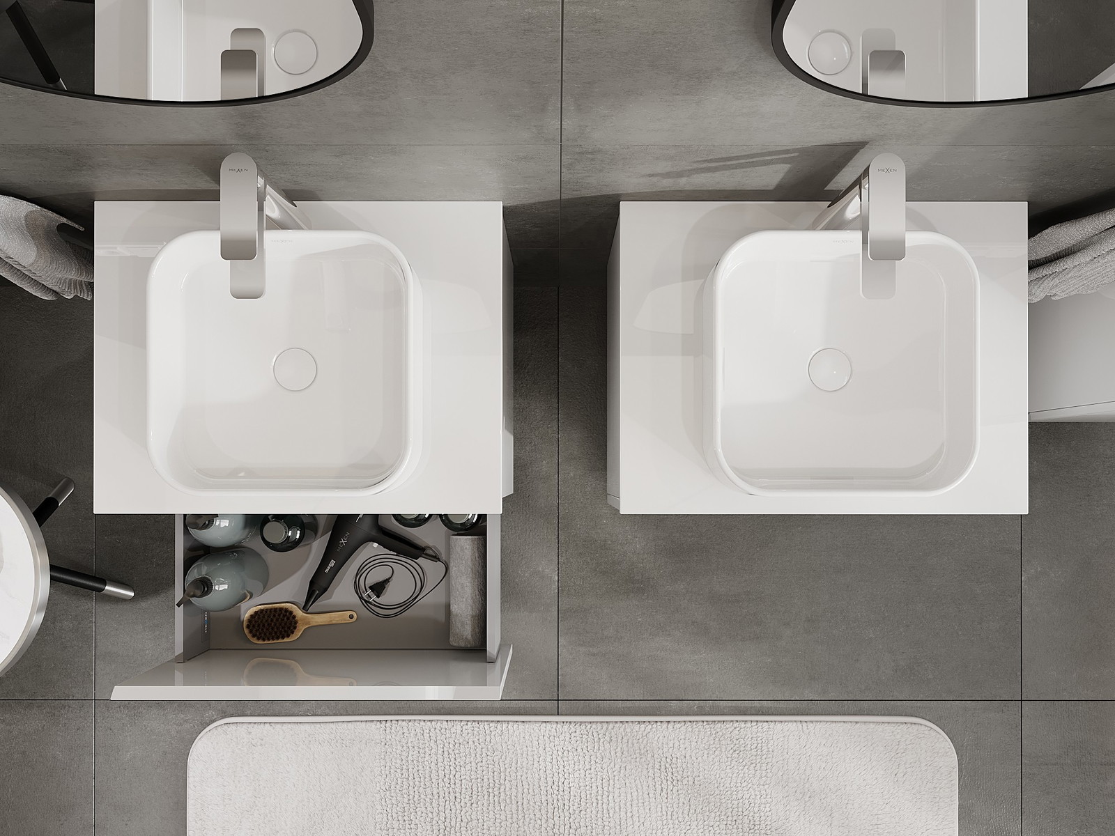 Нашите модулни мебели за баня могат да се комбинират в различни цветови конфигурации, което позволява пълна персонализация. Може да се избере както външният вид, така и функциите на отделните елементи, което позволява съчетаване на мебелите със собствените стилови и функционални предпочитания.