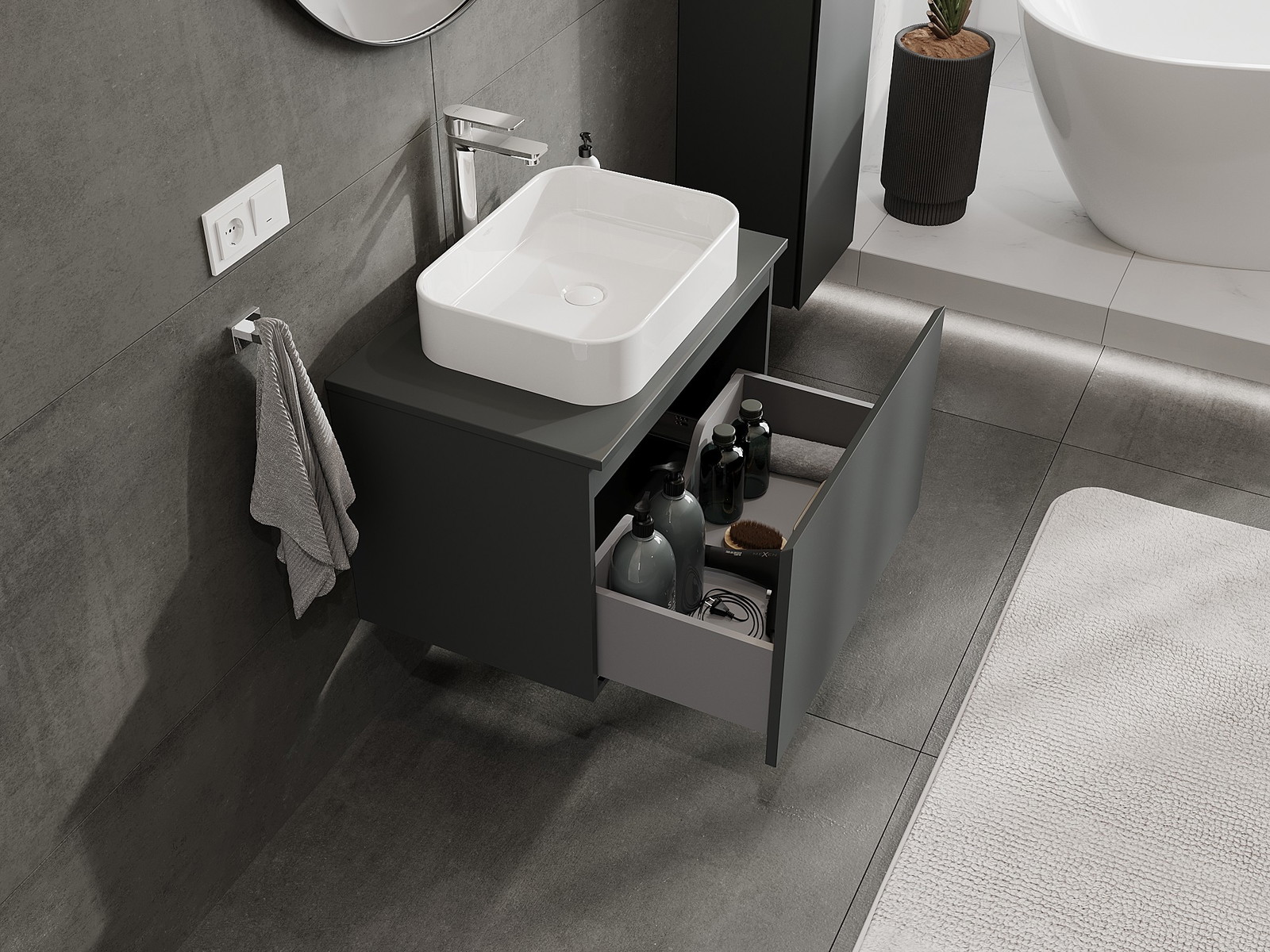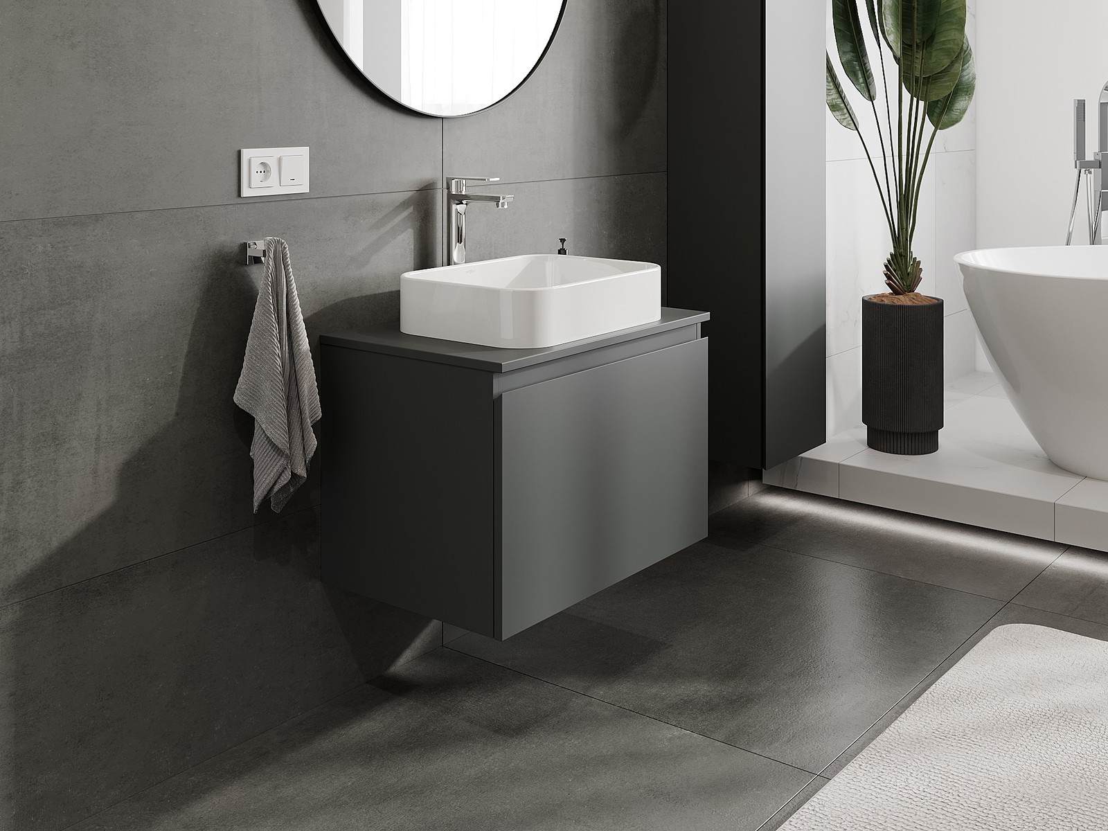 Нашите модулни мебели за баня могат да се комбинират в различни цветови конфигурации, което позволява пълна персонализация. Може да се избере както външният вид, така и функциите на отделните елементи, което позволява съчетаване на мебелите със собствените стилови и функционални предпочитания.