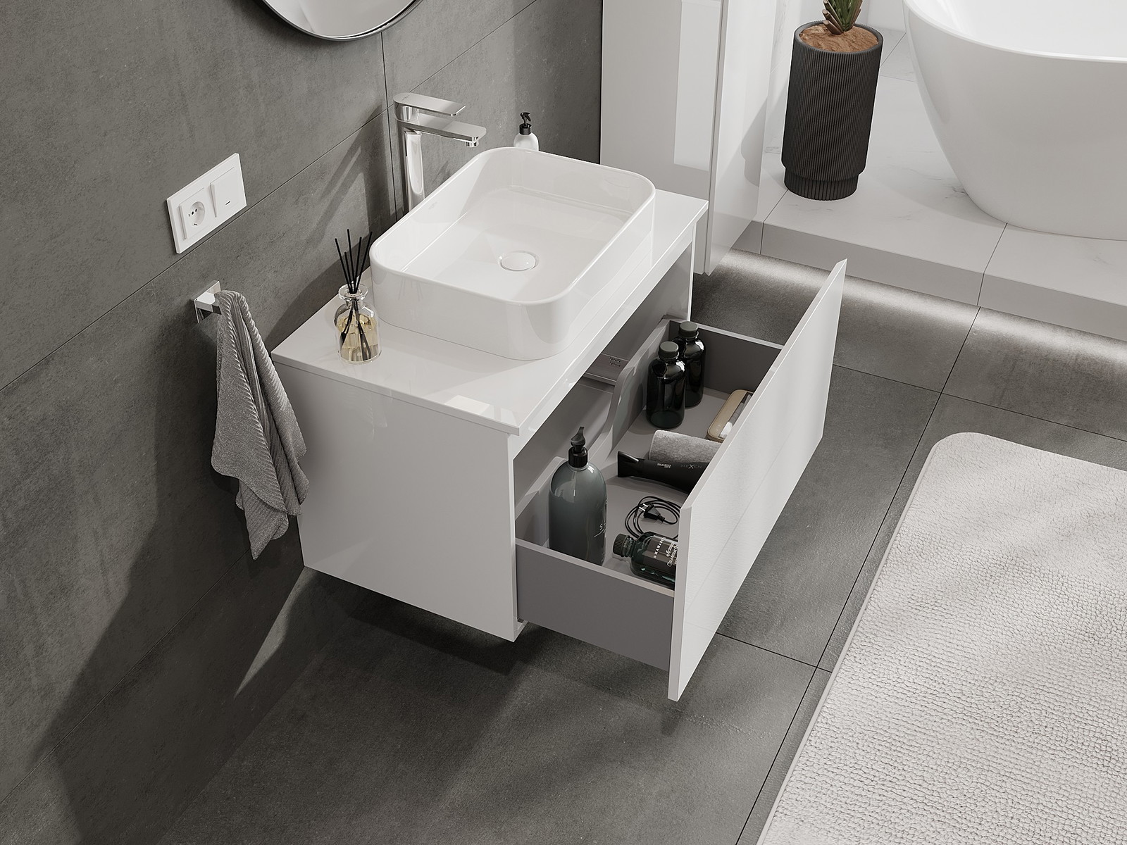 Корпусът на шкафа се доставя напълно сглобен, което означава максимално удобство и спестяване на време. Не е нужно да губите часове за сглобяване на мебела – просто го монтирайте на избраното място в банята. Това е идеалното решение за хора, които ценят бързия монтаж и незабавния ефект.