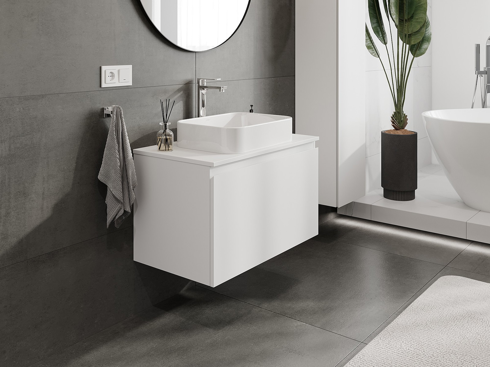 Корпусът на шкафа се доставя напълно сглобен, което означава максимално удобство и спестяване на време. Не е нужно да губите часове за сглобяване на мебела – просто го монтирайте на избраното място в банята. Това е идеалното решение за хора, които ценят бързия монтаж и незабавния ефект.