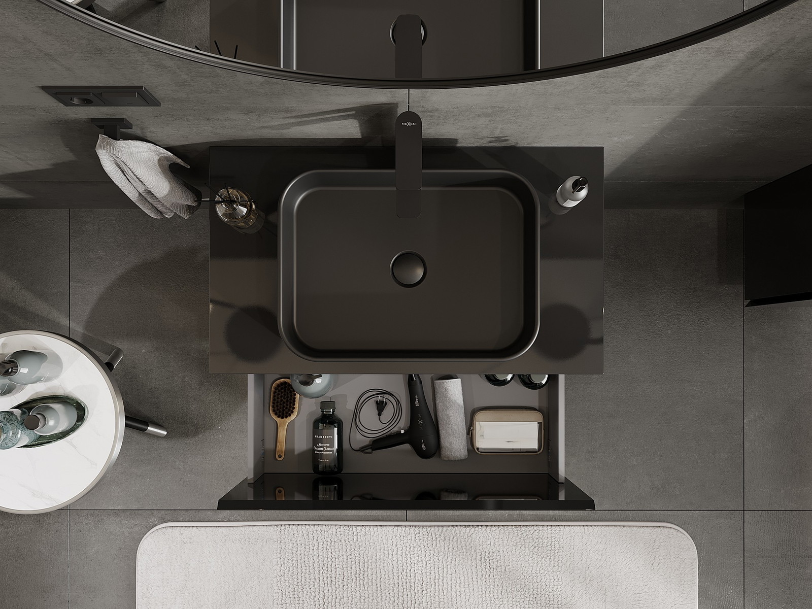 Изрезът в чекмеджето е проектиран по такъв начин, че да побере сифона, който е необходим в мивковите инсталации. Благодарение на това мебелът може да бъде монтиран напълно функционално, без да се налага отказване от пространството в чекмеджето заради инсталацията.