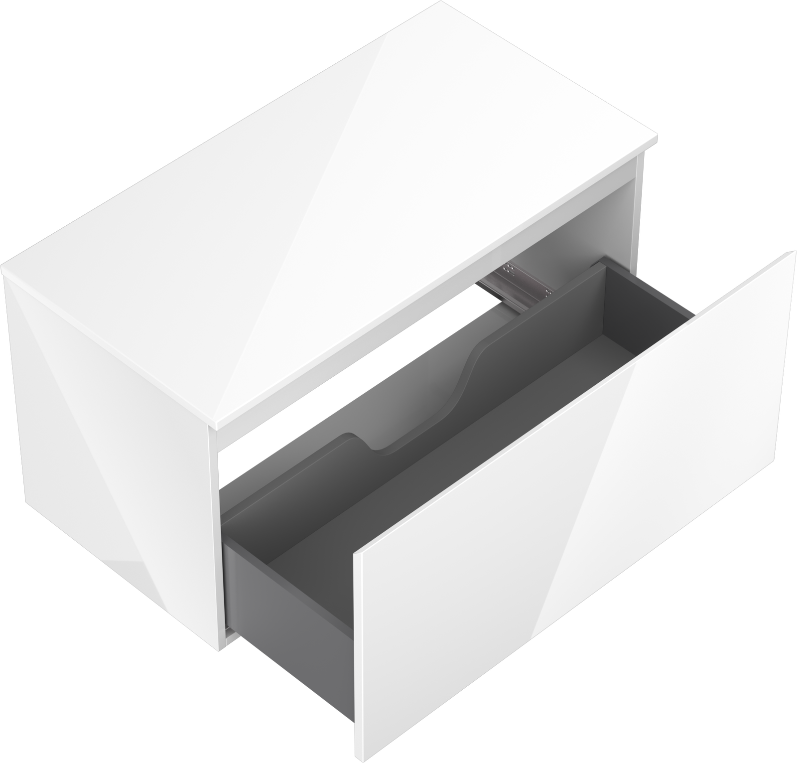 Изрезът в чекмеджето е проектиран по такъв начин, че да побере сифона, който е необходим в мивковите инсталации. Благодарение на това мебелът може да бъде монтиран напълно функционално, без да се налага отказване от пространството в чекмеджето заради инсталацията.