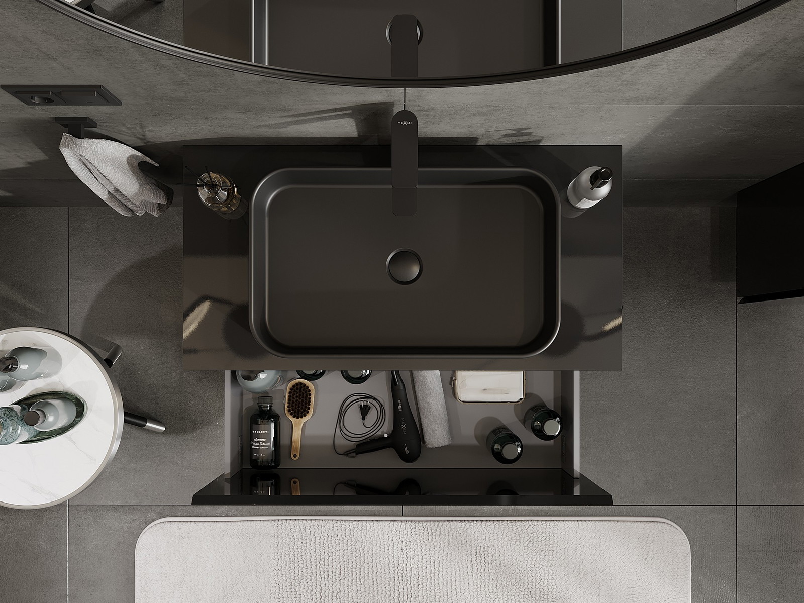 Изрезът в чекмеджето е проектиран по такъв начин, че да побере сифона, който е необходим в мивковите инсталации. Благодарение на това мебелът може да бъде монтиран напълно функционално, без да се налага отказване от пространството в чекмеджето заради инсталацията.