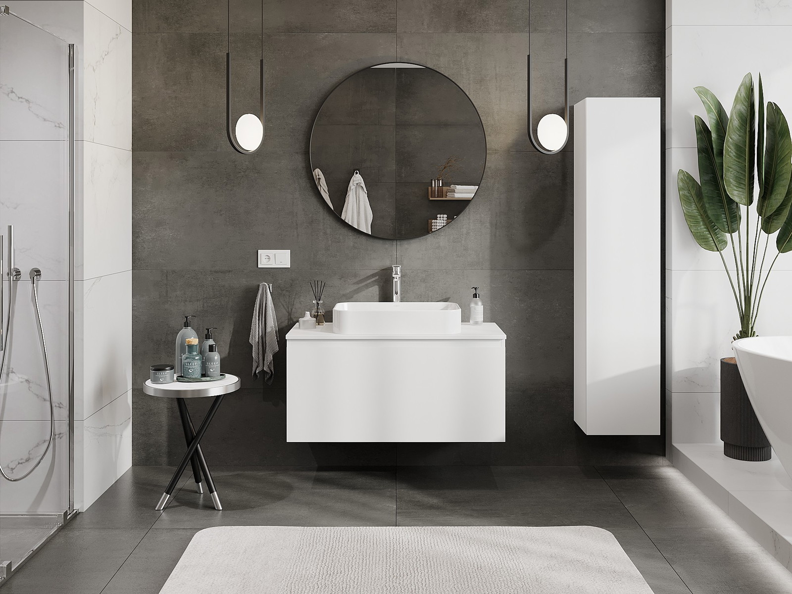 Корпусът на шкафа се доставя напълно сглобен, което означава максимално удобство и спестяване на време. Не е нужно да губите часове за сглобяване на мебела – просто го монтирайте на избраното място в банята. Това е идеалното решение за хора, които ценят бързия монтаж и незабавния ефект.
