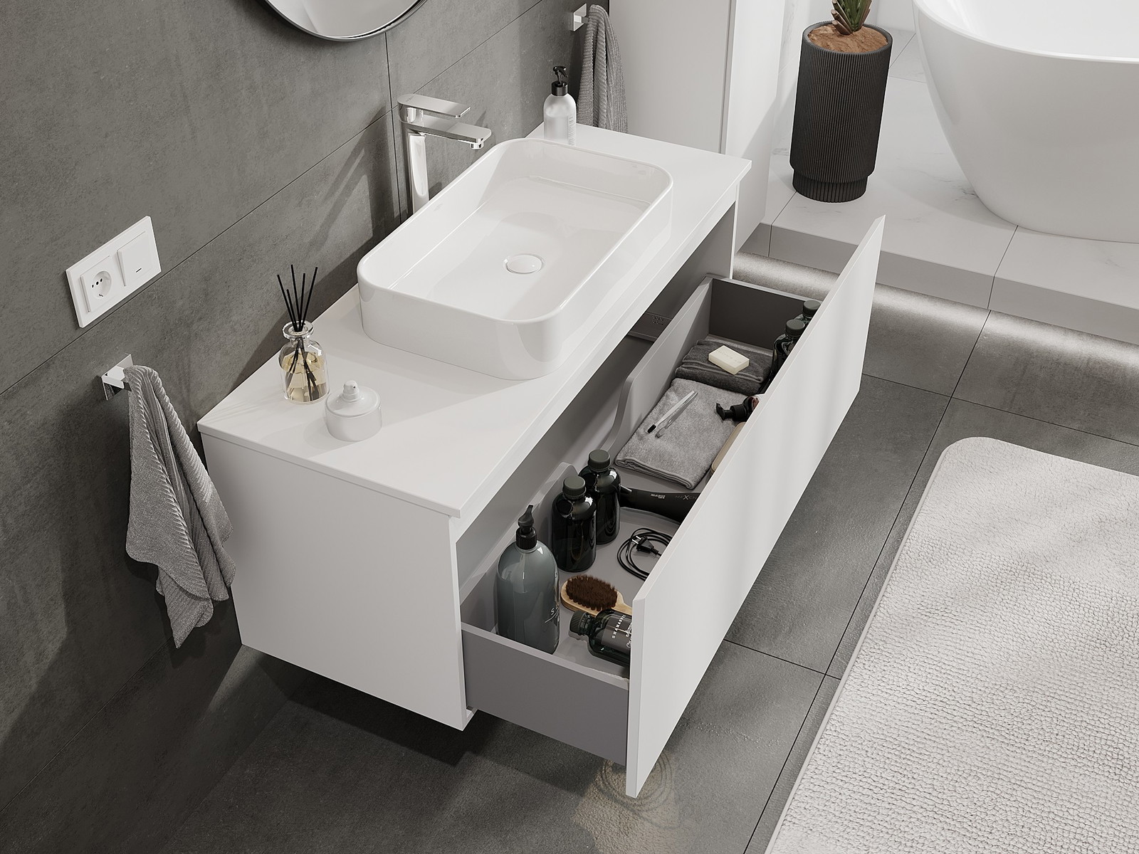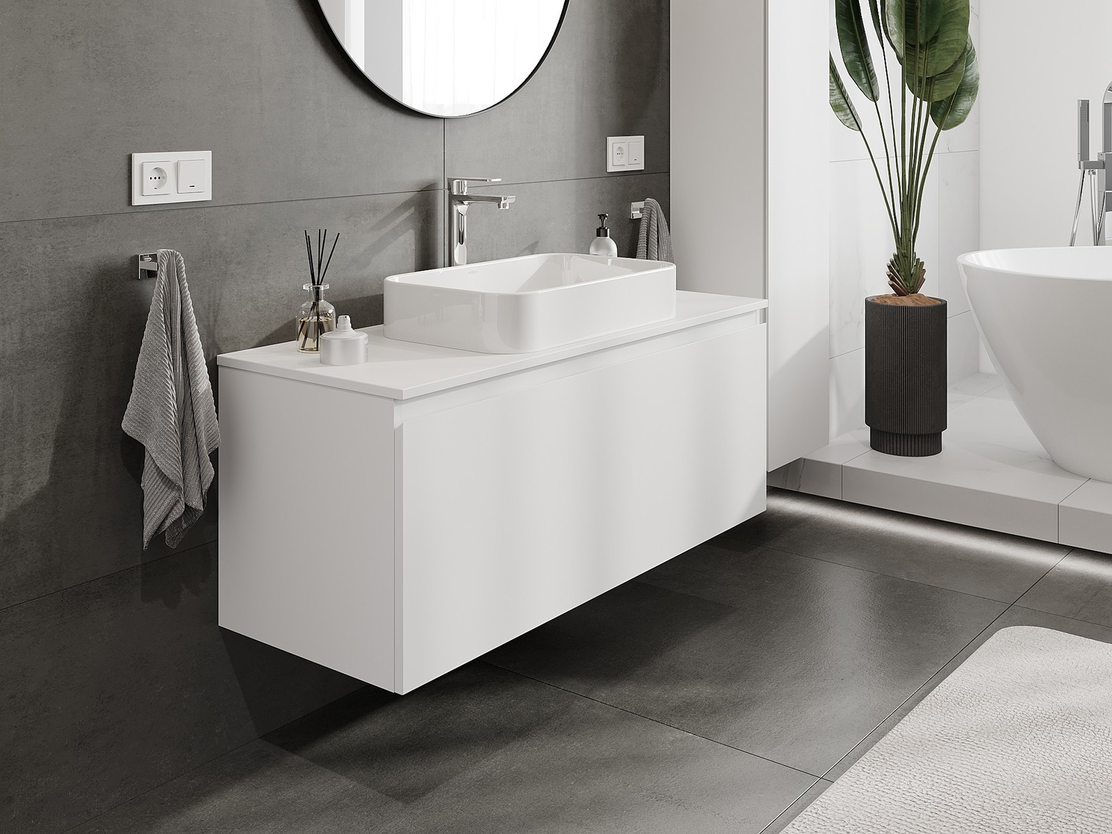 Нашите модулни мебели за баня могат да се комбинират в различни цветови конфигурации, което позволява пълна персонализация. Може да се избере както външният вид, така и функциите на отделните елементи, което позволява съчетаване на мебелите със собствените стилови и функционални предпочитания.