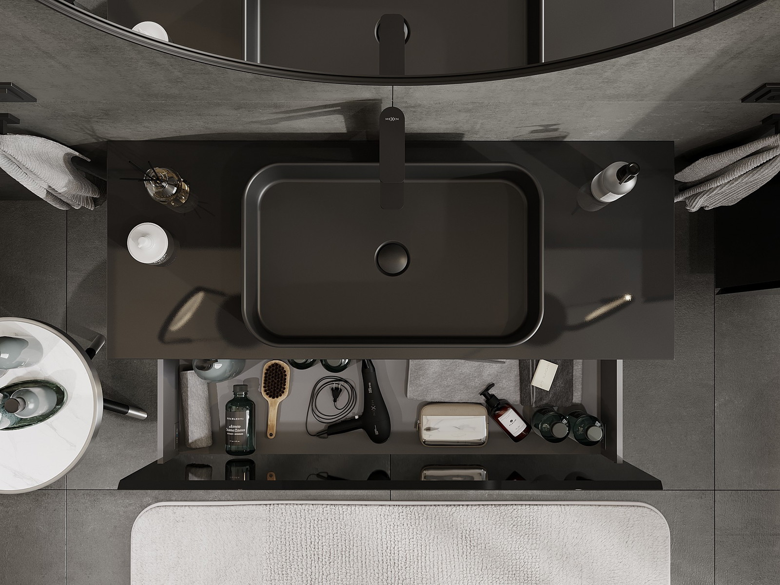 Изрезът в чекмеджето е проектиран по такъв начин, че да побере сифона, който е необходим в мивковите инсталации. Благодарение на това мебелът може да бъде монтиран напълно функционално, без да се налага отказване от пространството в чекмеджето заради инсталацията.