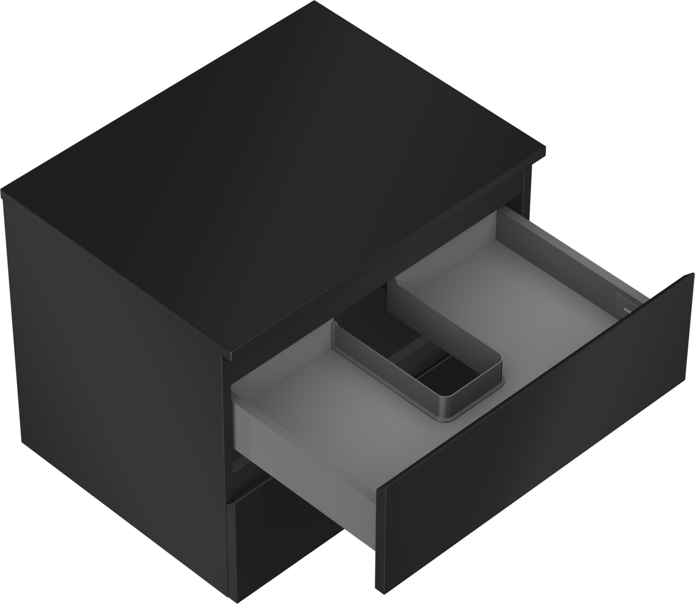 Изрезът в чекмеджето е проектиран по такъв начин, че да побере сифона, който е необходим в мивковите инсталации. Благодарение на това мебелът може да бъде монтиран напълно функционално, без да се налага отказване от пространството в чекмеджето заради инсталацията.