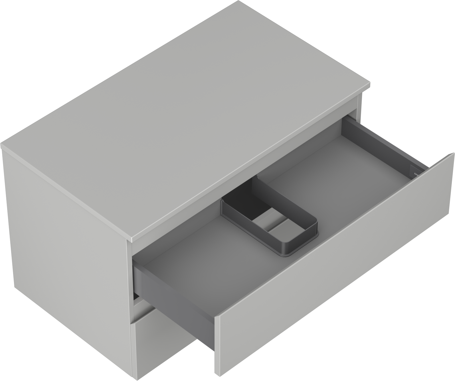 Изрезът в чекмеджето е проектиран по такъв начин, че да побере сифона, който е необходим в мивковите инсталации. Благодарение на това мебелът може да бъде монтиран напълно функционално, без да се налага отказване от пространството в чекмеджето заради инсталацията.