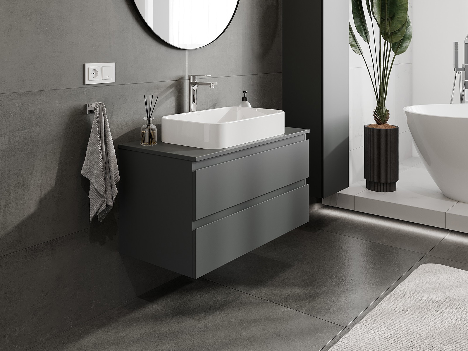 Корпусът на шкафа се доставя напълно сглобен, което означава максимално удобство и спестяване на време. Не е нужно да губите часове за сглобяване на мебела – просто го монтирайте на избраното място в банята. Това е идеалното решение за хора, които ценят бързия монтаж и незабавния ефект.