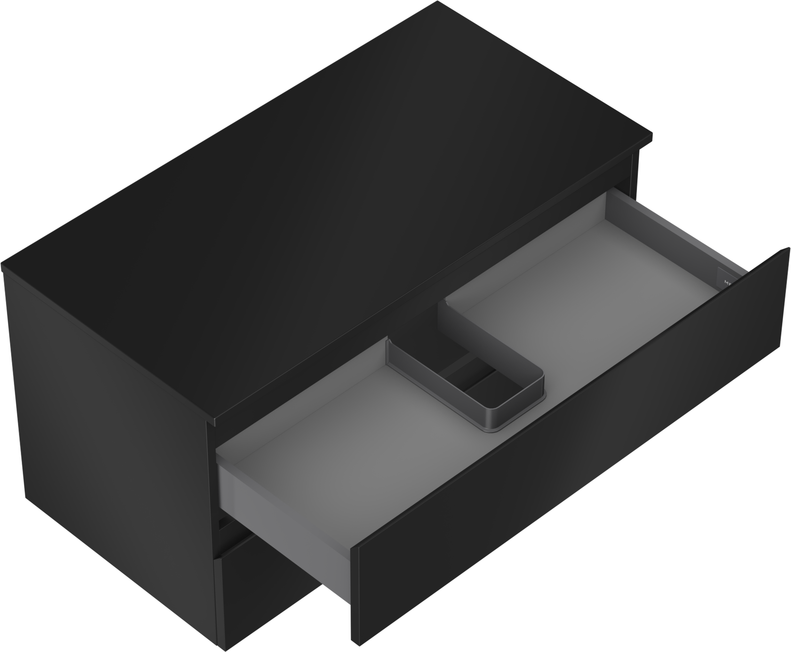 Изрезът в чекмеджето е проектиран по такъв начин, че да побере сифона, който е необходим в мивковите инсталации. Благодарение на това мебелът може да бъде монтиран напълно функционално, без да се налага отказване от пространството в чекмеджето заради инсталацията.