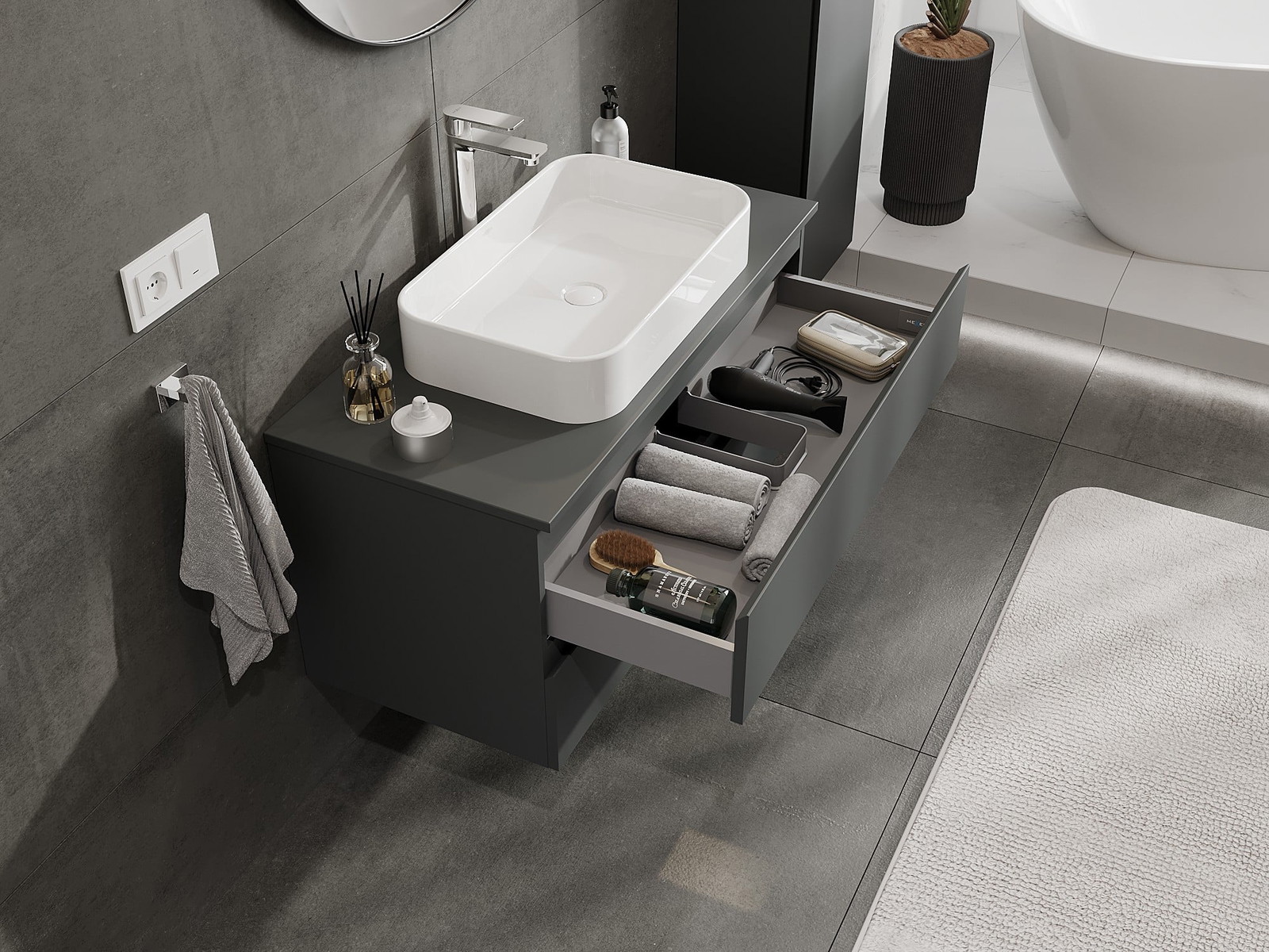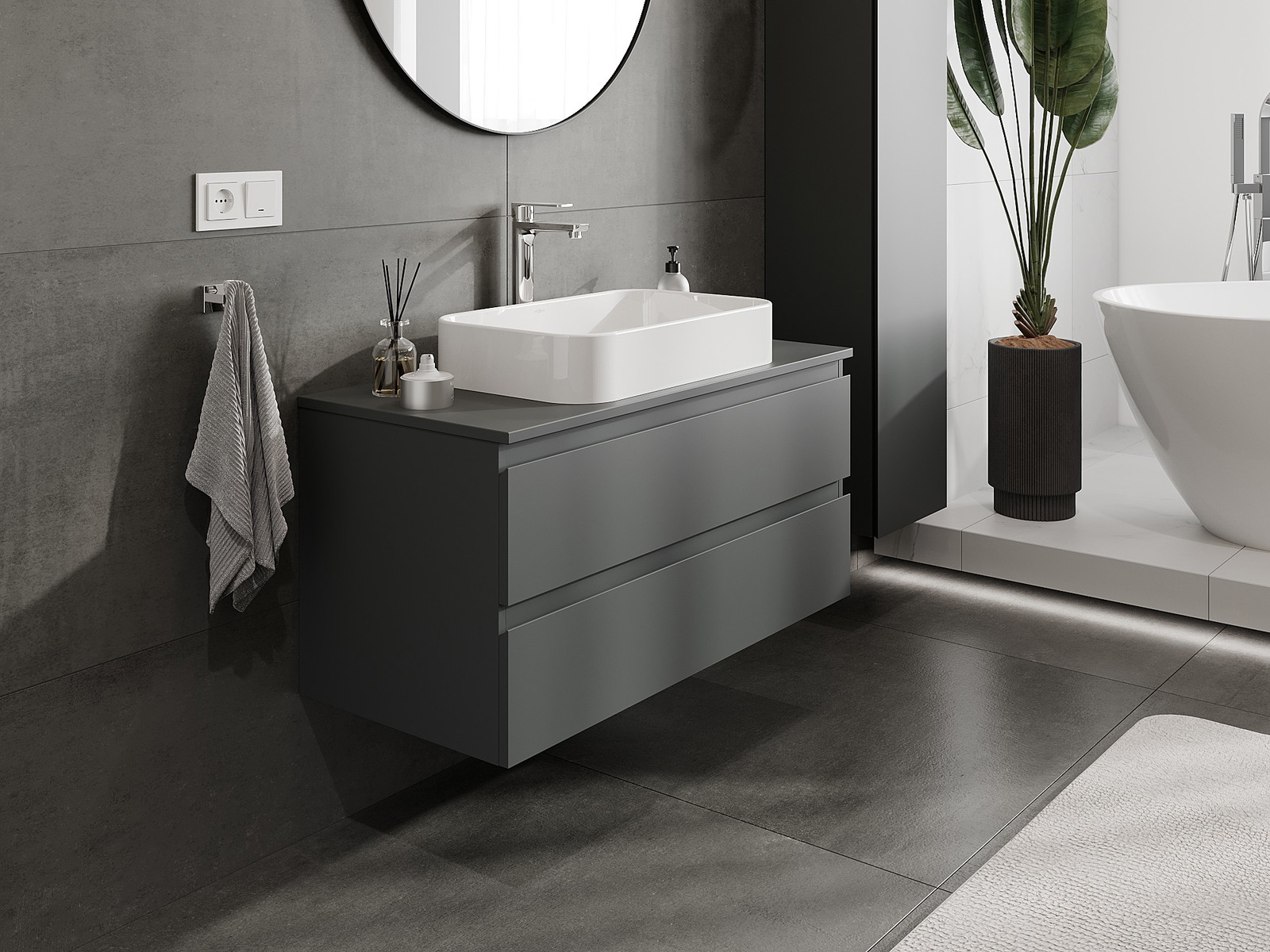 Нашите модулни мебели за баня могат да се комбинират в различни цветови конфигурации, което позволява пълна персонализация. Може да се избере както външният вид, така и функциите на отделните елементи, което позволява съчетаване на мебелите със собствените стилови и функционални предпочитания.