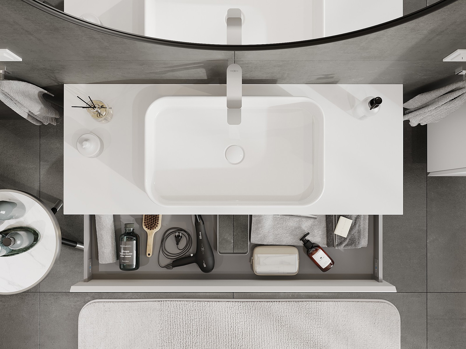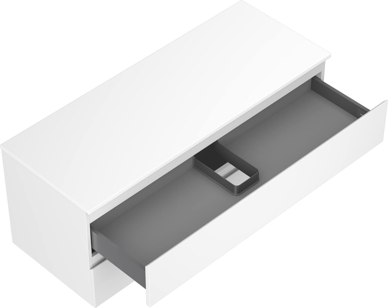 Изрезът в чекмеджето е проектиран по такъв начин, че да побере сифона, който е необходим в мивковите инсталации. Благодарение на това мебелът може да бъде монтиран напълно функционално, без да се налага отказване от пространството в чекмеджето заради инсталацията.