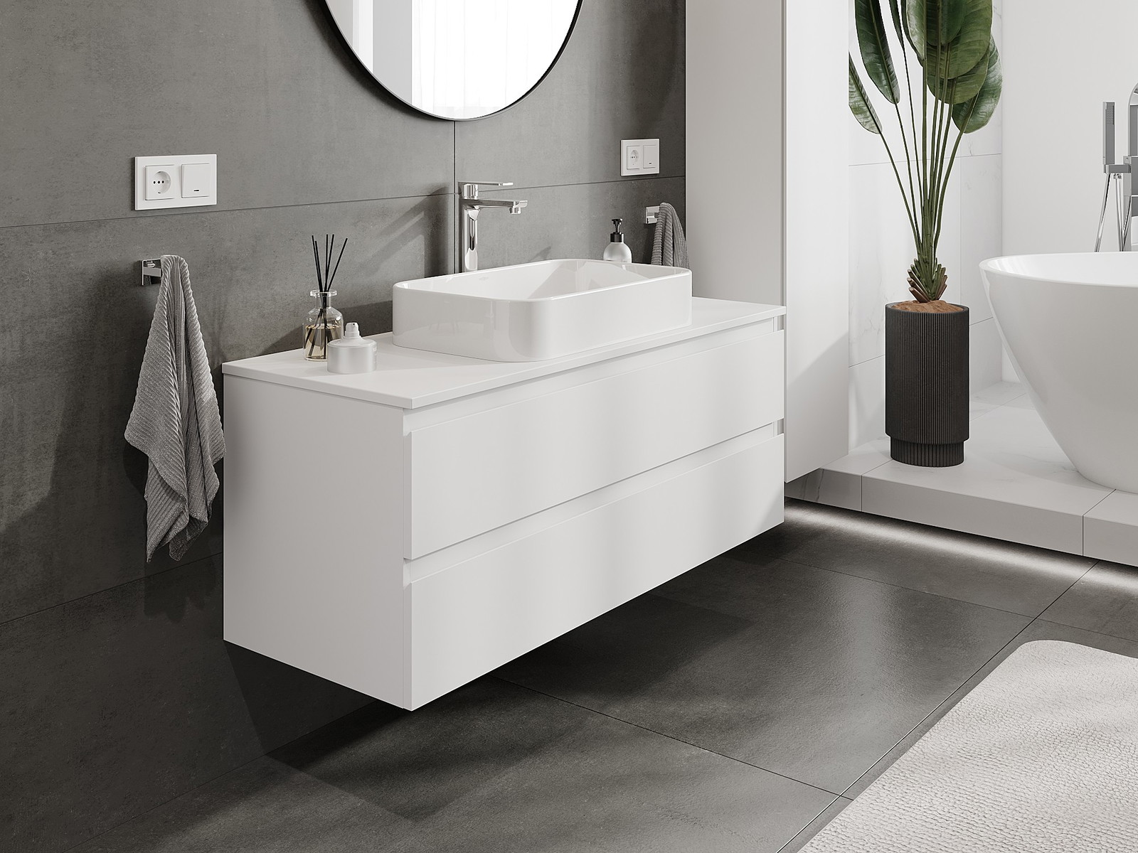 Корпусът на шкафа се доставя напълно сглобен, което означава максимално удобство и спестяване на време. Не е нужно да губите часове за сглобяване на мебела – просто го монтирайте на избраното място в банята. Това е идеалното решение за хора, които ценят бързия монтаж и незабавния ефект.