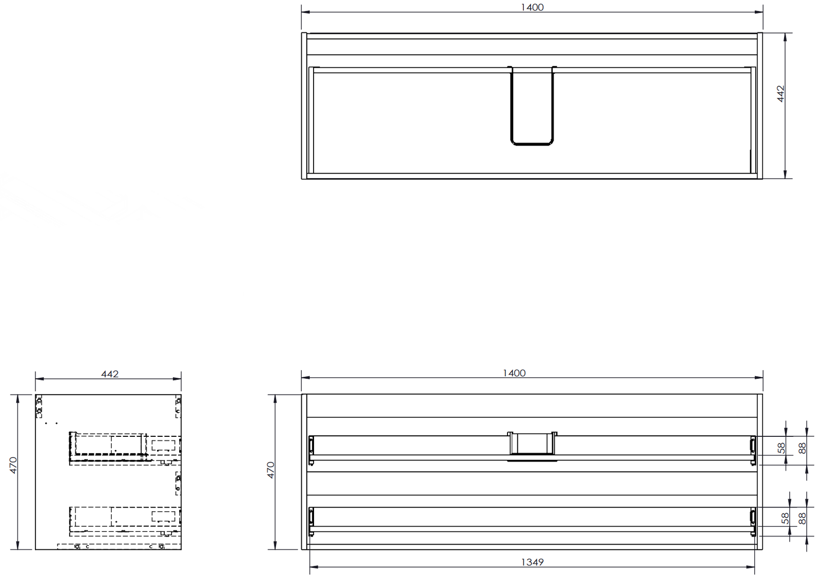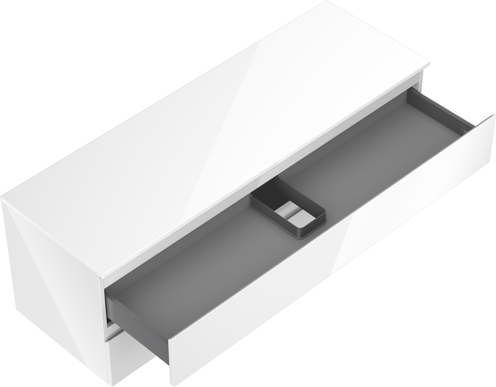 Изрезът в чекмеджето е проектиран по такъв начин, че да побере сифона, който е необходим в мивковите инсталации. Благодарение на това мебелът може да бъде монтиран напълно функционално, без да се налага отказване от пространството в чекмеджето заради инсталацията.