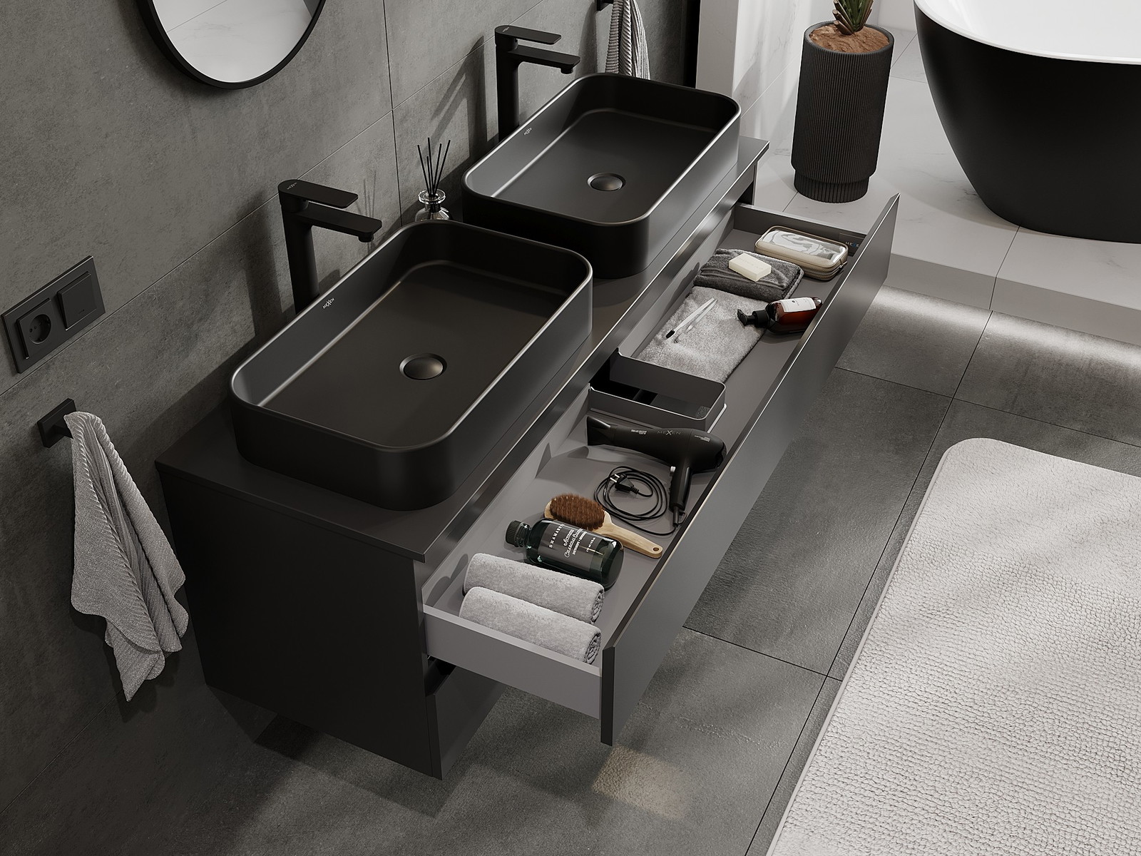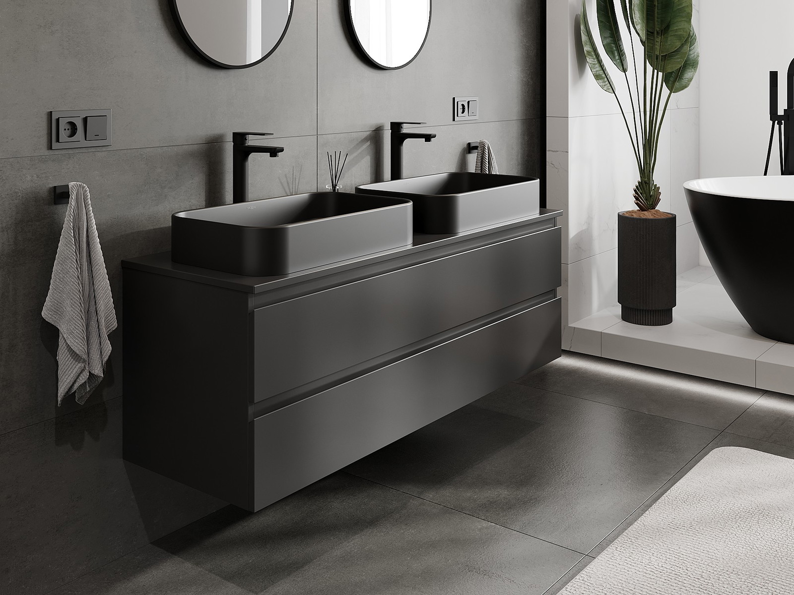 Нашите модулни мебели за баня могат да се комбинират в различни цветови конфигурации, което позволява пълна персонализация. Може да се избере както външният вид, така и функциите на отделните елементи, което позволява съчетаване на мебелите със собствените стилови и функционални предпочитания.