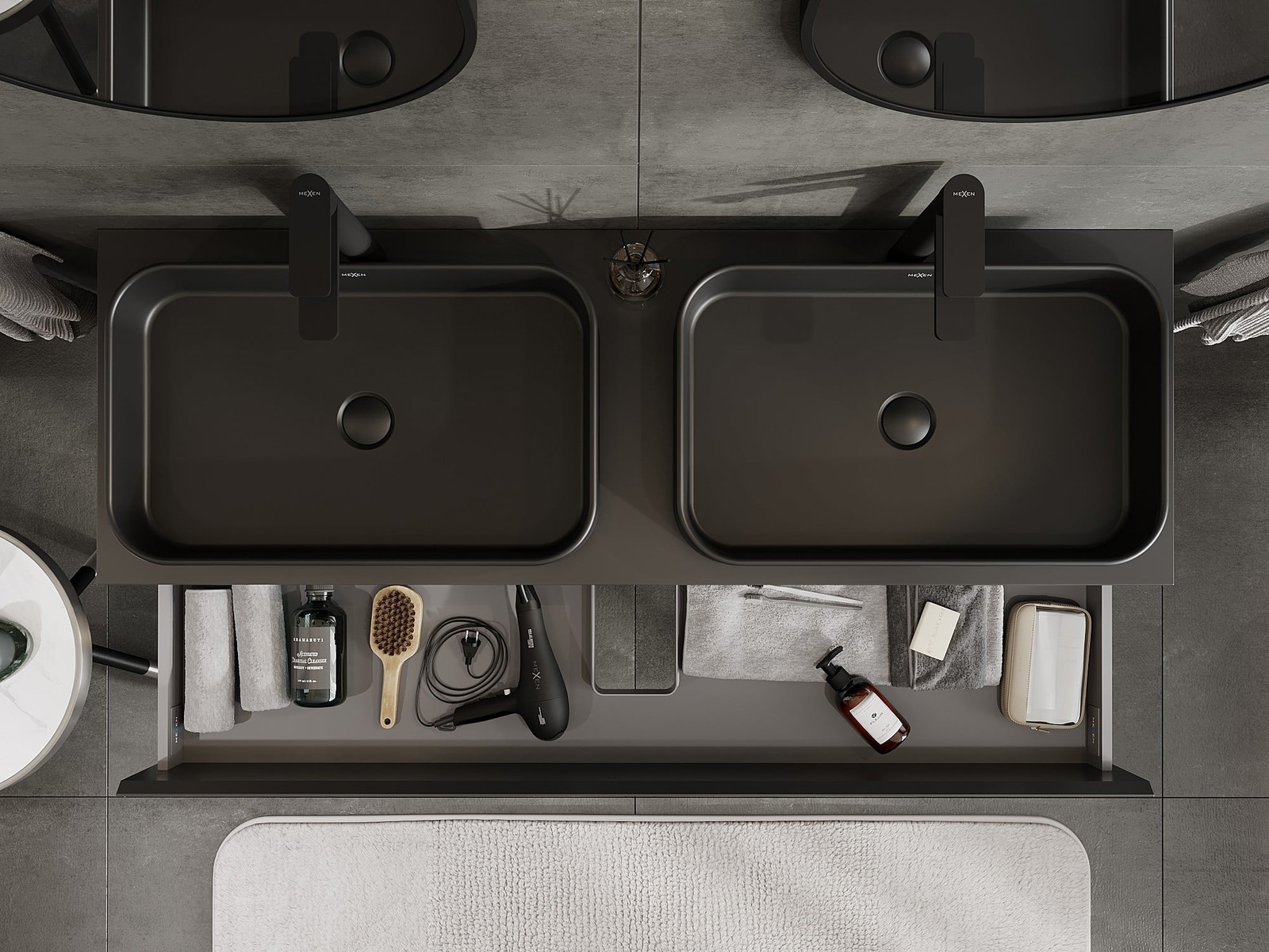 Изрезът в чекмеджето е проектиран по такъв начин, че да побере сифона, който е необходим в мивковите инсталации. Благодарение на това мебелът може да бъде монтиран напълно функционално, без да се налага отказване от пространството в чекмеджето заради инсталацията.