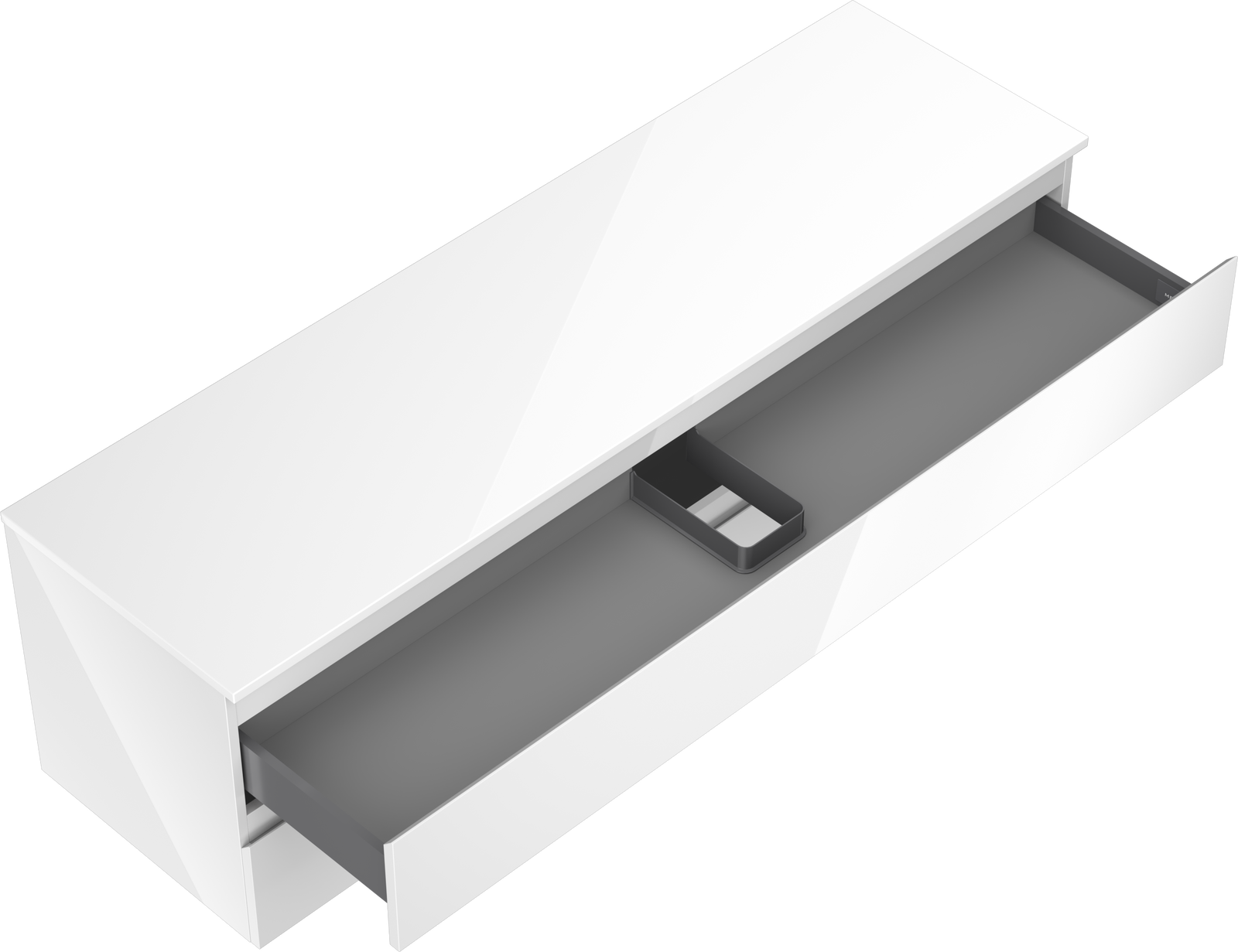 Изрезът в чекмеджето е проектиран по такъв начин, че да побере сифона, който е необходим в мивковите инсталации. Благодарение на това мебелът може да бъде монтиран напълно функционално, без да се налага отказване от пространството в чекмеджето заради инсталацията.