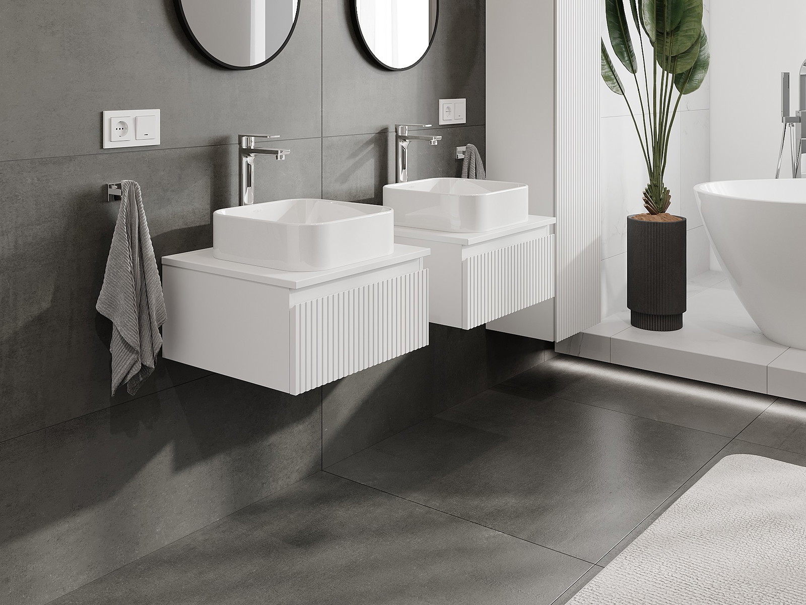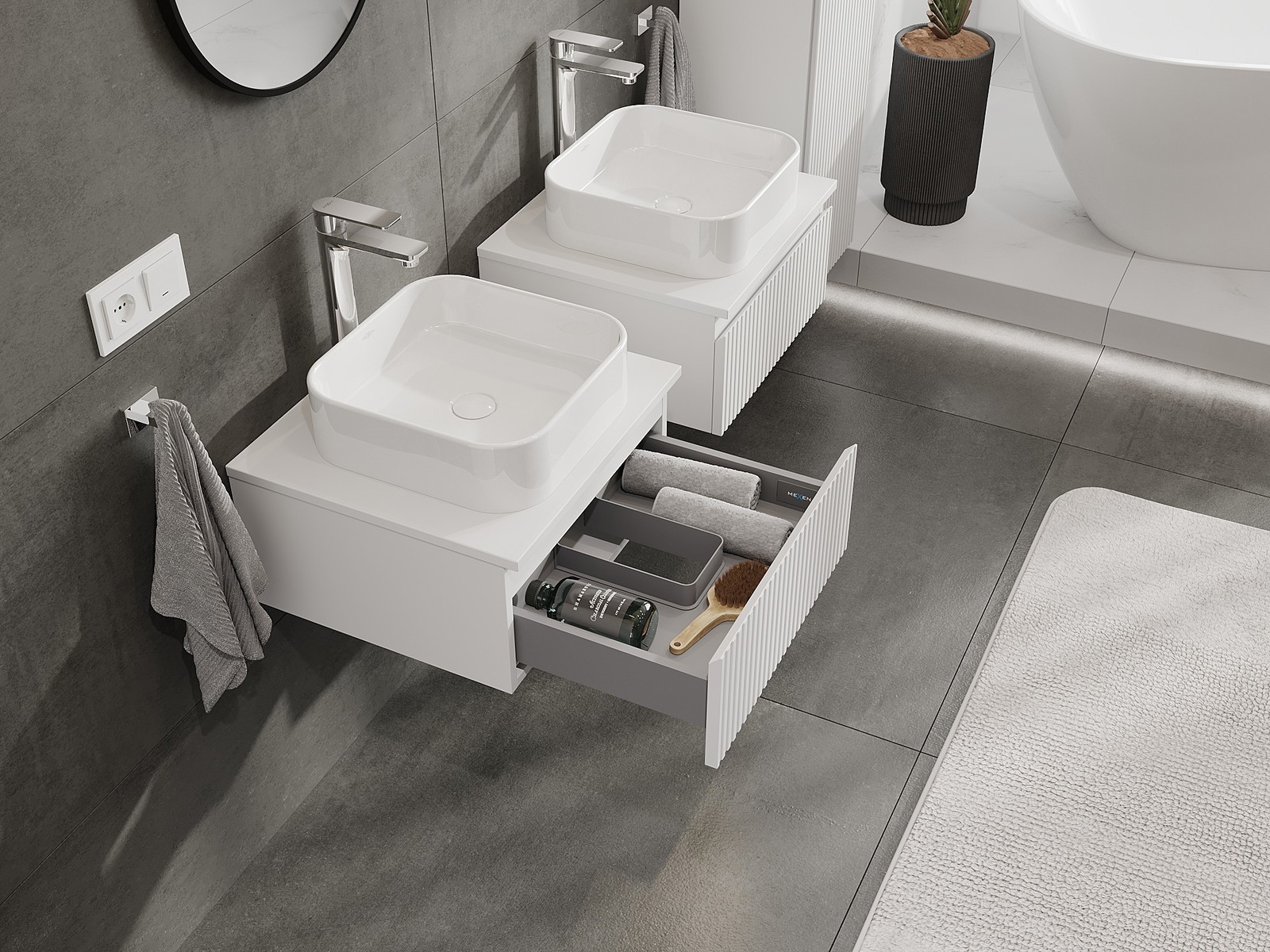 Нашите модулни мебели за баня могат да се комбинират в различни цветови конфигурации, което позволява пълна персонализация. Може да се избере както външният вид, така и функциите на отделните елементи, което позволява съчетаване на мебелите със собствените стилови и функционални предпочитания.