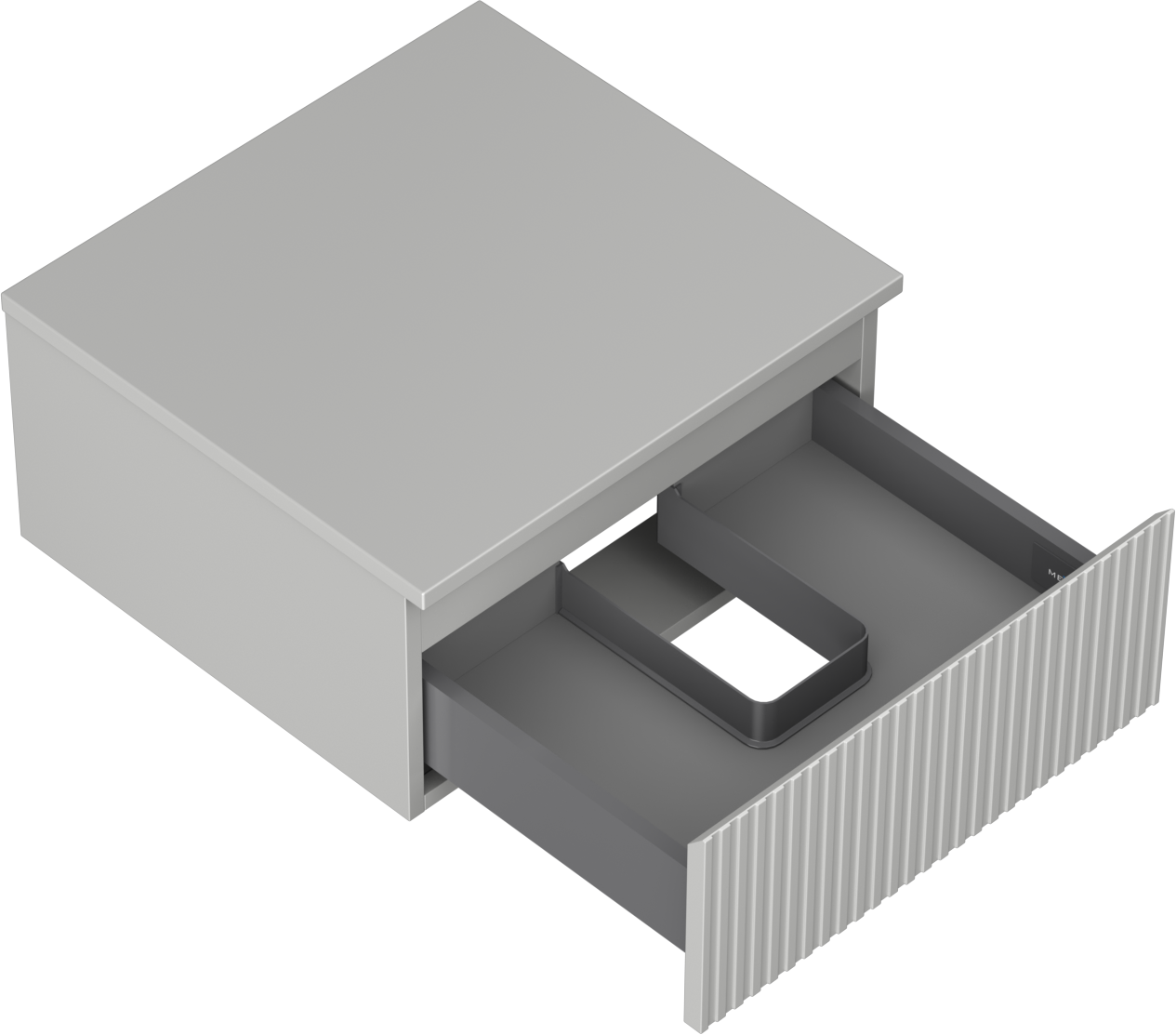 Изрезът в чекмеджето е проектиран по такъв начин, че да побере сифона, който е необходим в мивковите инсталации. Благодарение на това мебелът може да бъде монтиран напълно функционално, без да се налага отказване от пространството в чекмеджето заради инсталацията.