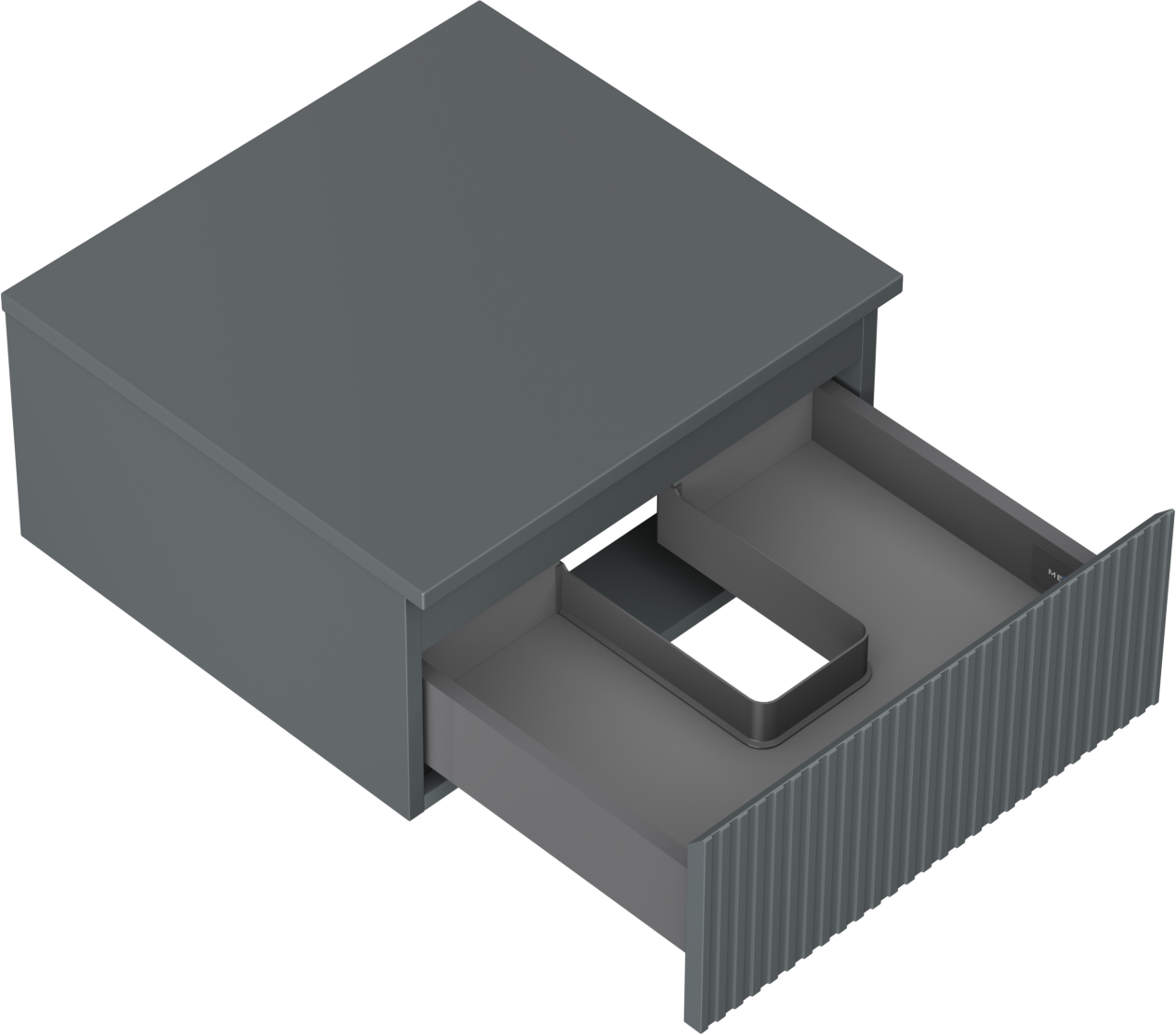 Изрезът в чекмеджето е проектиран по такъв начин, че да побере сифона, който е необходим в мивковите инсталации. Благодарение на това мебелът може да бъде монтиран напълно функционално, без да се налага отказване от пространството в чекмеджето заради инсталацията.