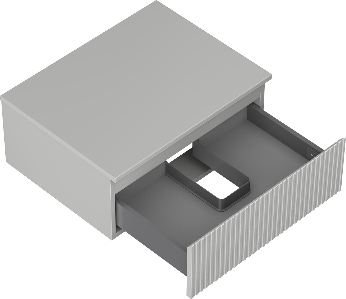 Изрезът в чекмеджето е проектиран по такъв начин, че да побере сифона, който е необходим в мивковите инсталации. Благодарение на това мебелът може да бъде монтиран напълно функционално, без да се налага отказване от пространството в чекмеджето заради инсталацията.