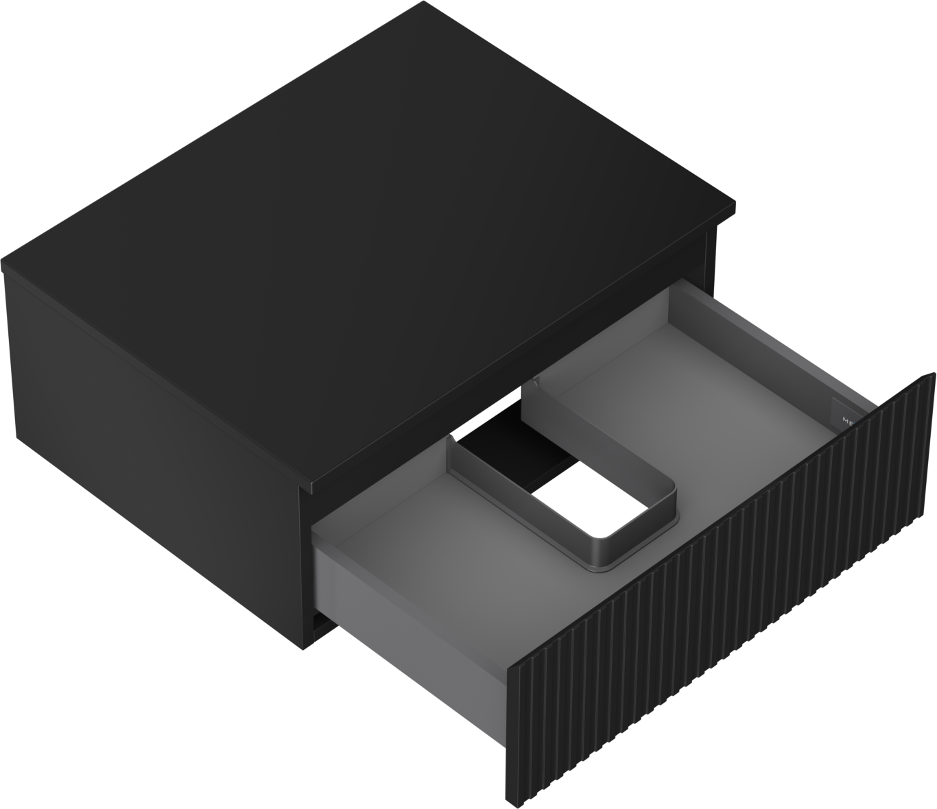 Изрезът в чекмеджето е проектиран по такъв начин, че да побере сифона, който е необходим в мивковите инсталации. Благодарение на това мебелът може да бъде монтиран напълно функционално, без да се налага отказване от пространството в чекмеджето заради инсталацията.