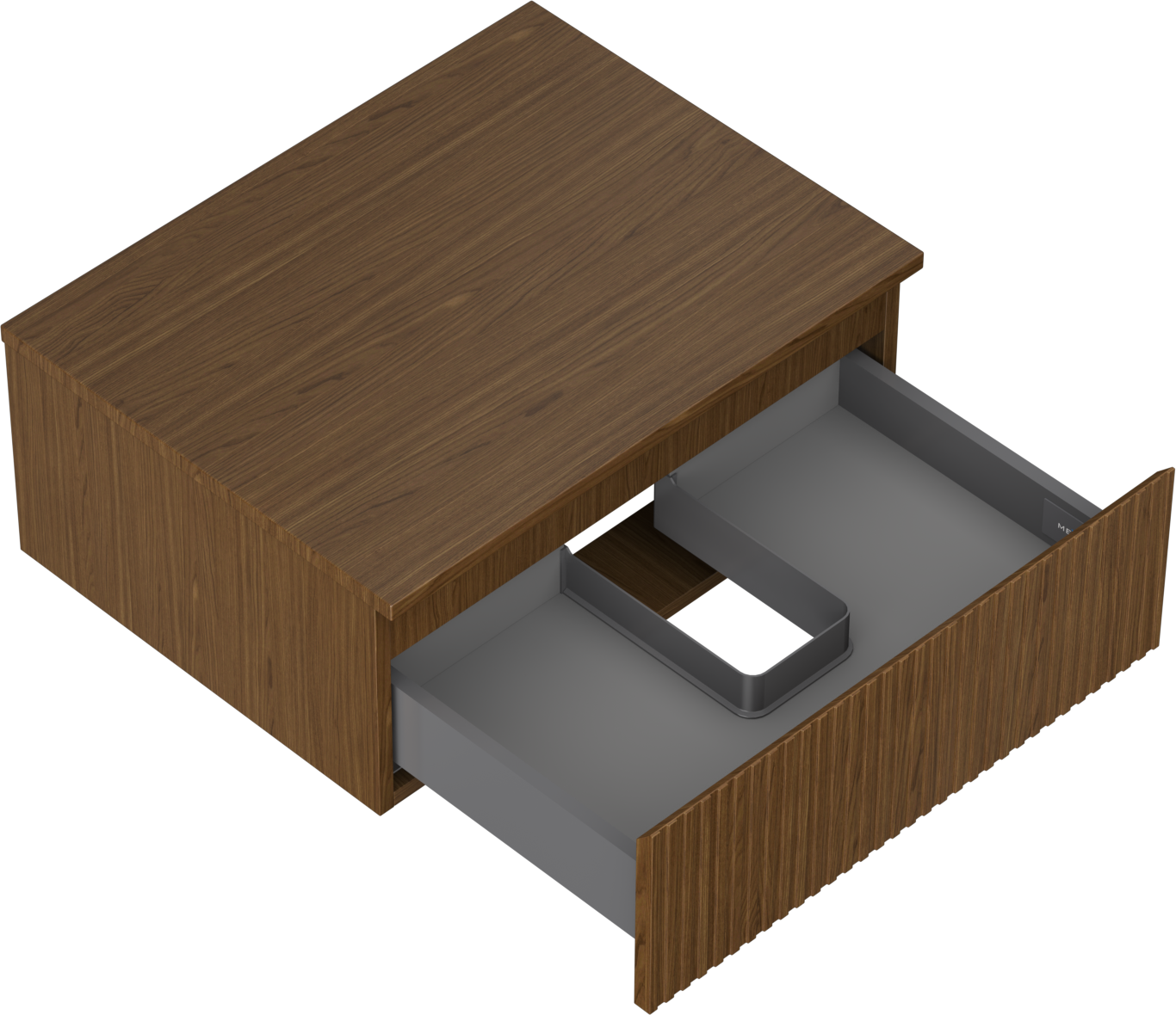 Изрезът в чекмеджето е проектиран по такъв начин, че да побере сифона, който е необходим в мивковите инсталации. Благодарение на това мебелът може да бъде монтиран напълно функционално, без да се налага отказване от пространството в чекмеджето заради инсталацията.