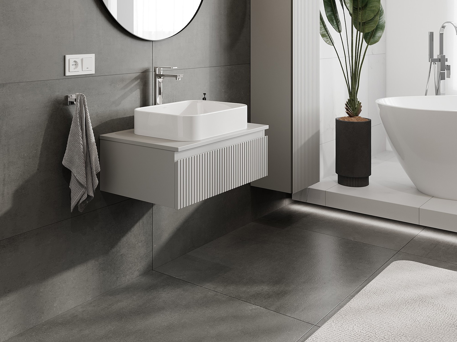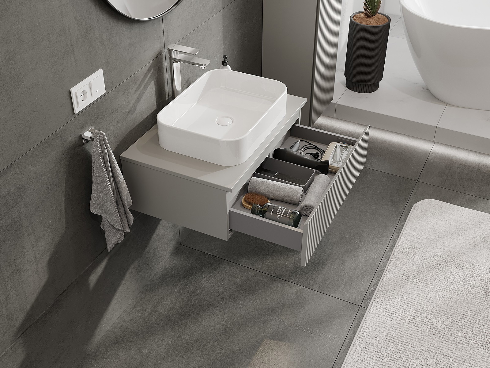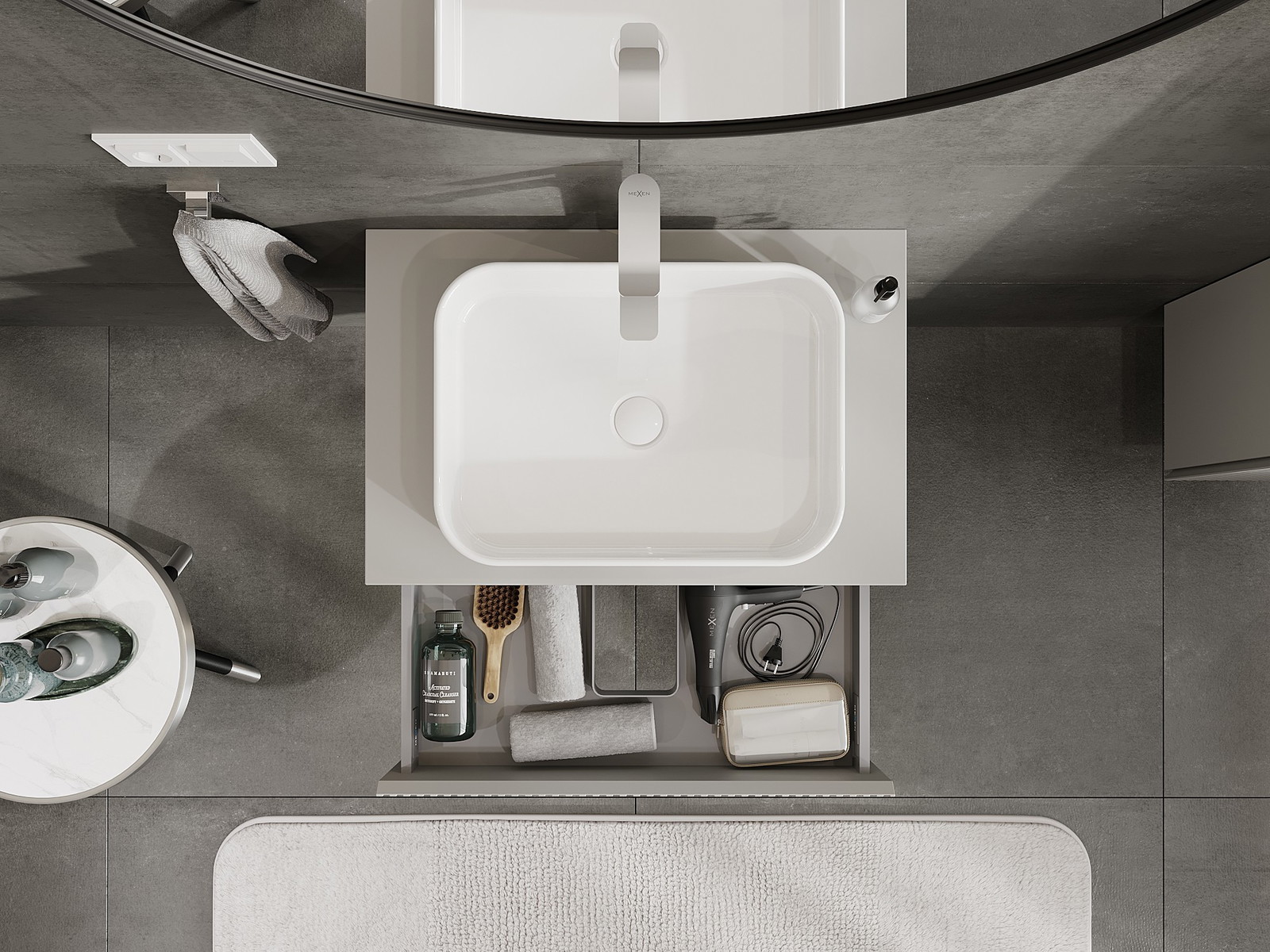 Mexen Rivel шкафче за баня за мивка 70 см с плот, 1 чекмедже, релефно, сив мат