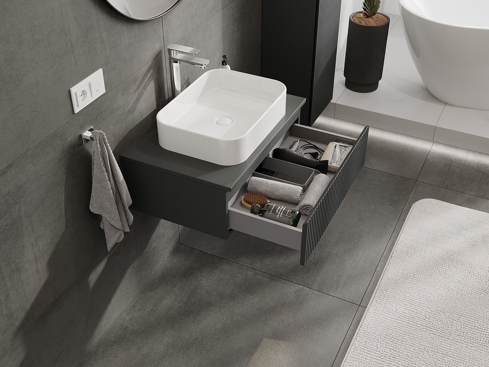 Нашите модулни мебели за баня могат да се комбинират в различни цветови конфигурации, което позволява пълна персонализация. Може да се избере както външният вид, така и функциите на отделните елементи, което позволява съчетаване на мебелите със собствените стилови и функционални предпочитания.