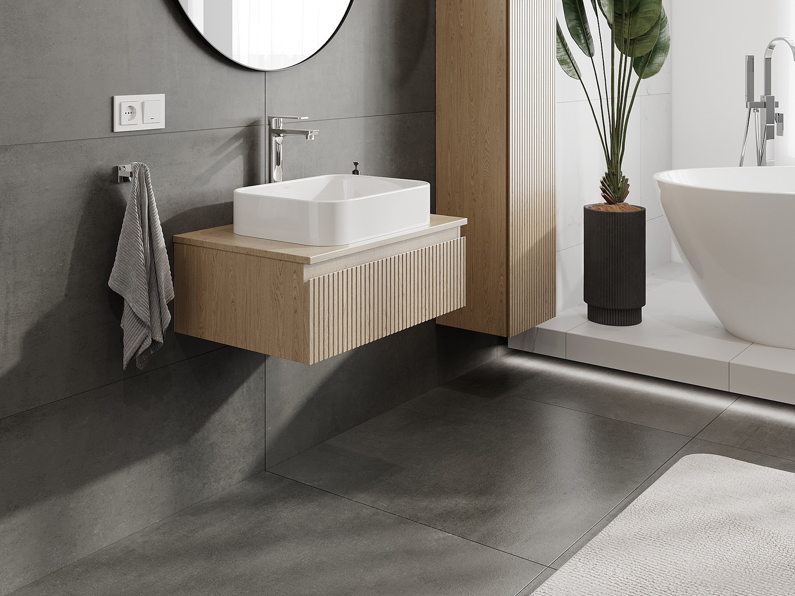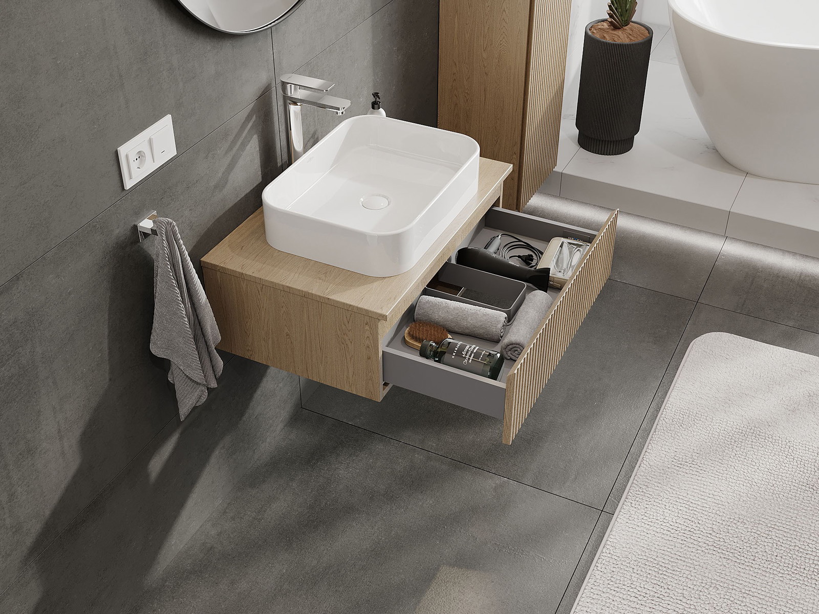 Mexen Rivel шкаф за баня под умивалник 70 см с плот, 1 чекмедже, релефна, дъб - 91A20-07023-1-BFC81