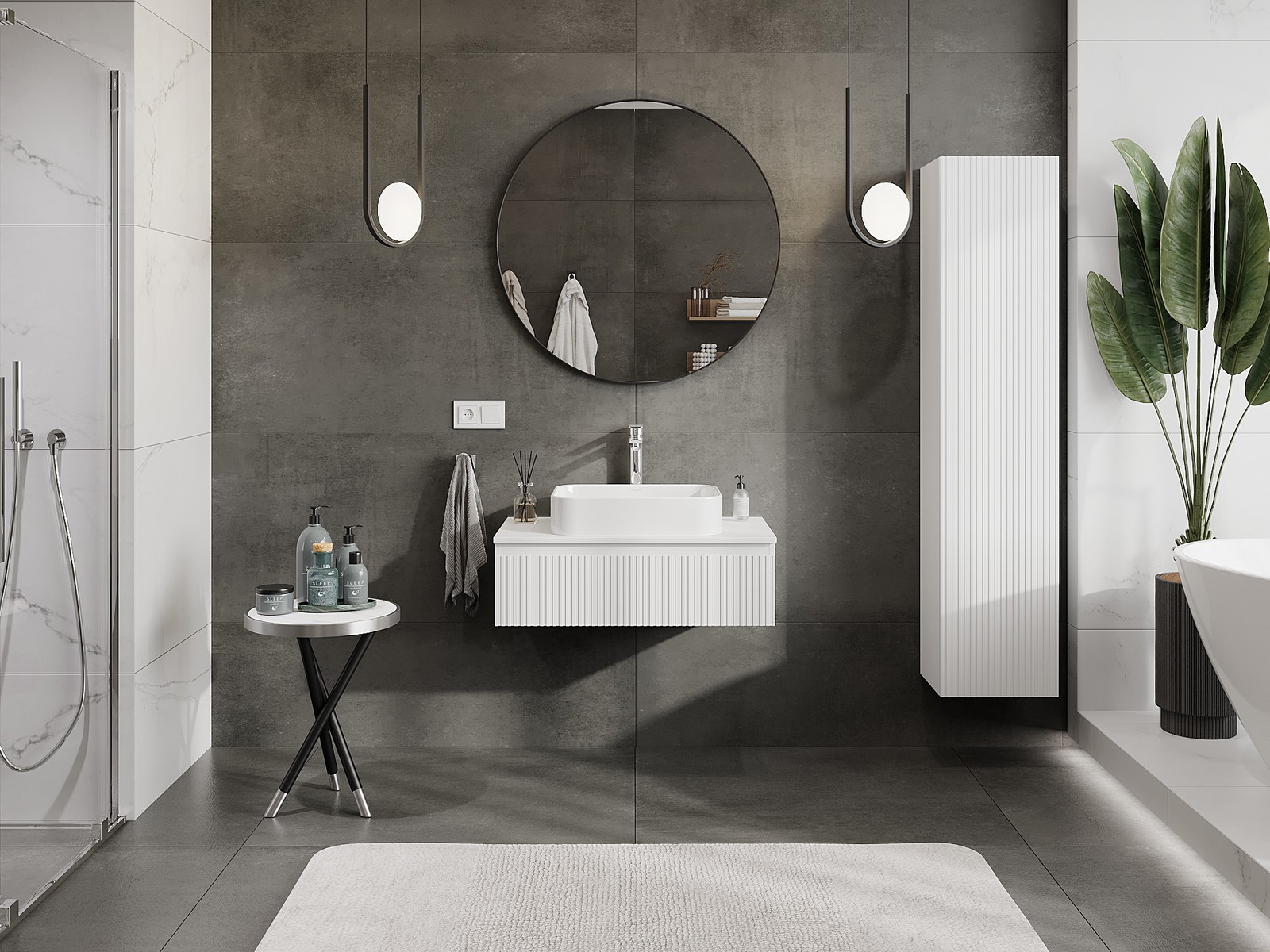 Корпусът на шкафа се доставя напълно сглобен, което означава максимално удобство и спестяване на време. Не е нужно да губите часове за сглобяване на мебела – просто го монтирайте на избраното място в банята. Това е идеалното решение за хора, които ценят бързия монтаж и незабавния ефект.