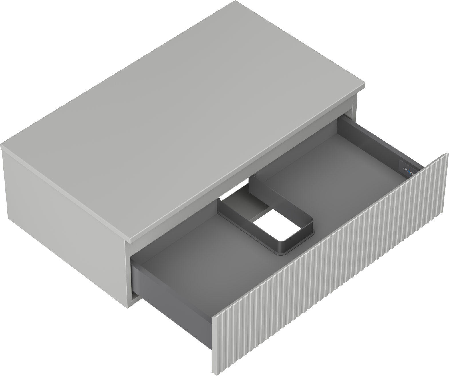 Изрезът в чекмеджето е проектиран по такъв начин, че да побере сифона, който е необходим в мивковите инсталации. Благодарение на това мебелът може да бъде монтиран напълно функционално, без да се налага отказване от пространството в чекмеджето заради инсталацията.