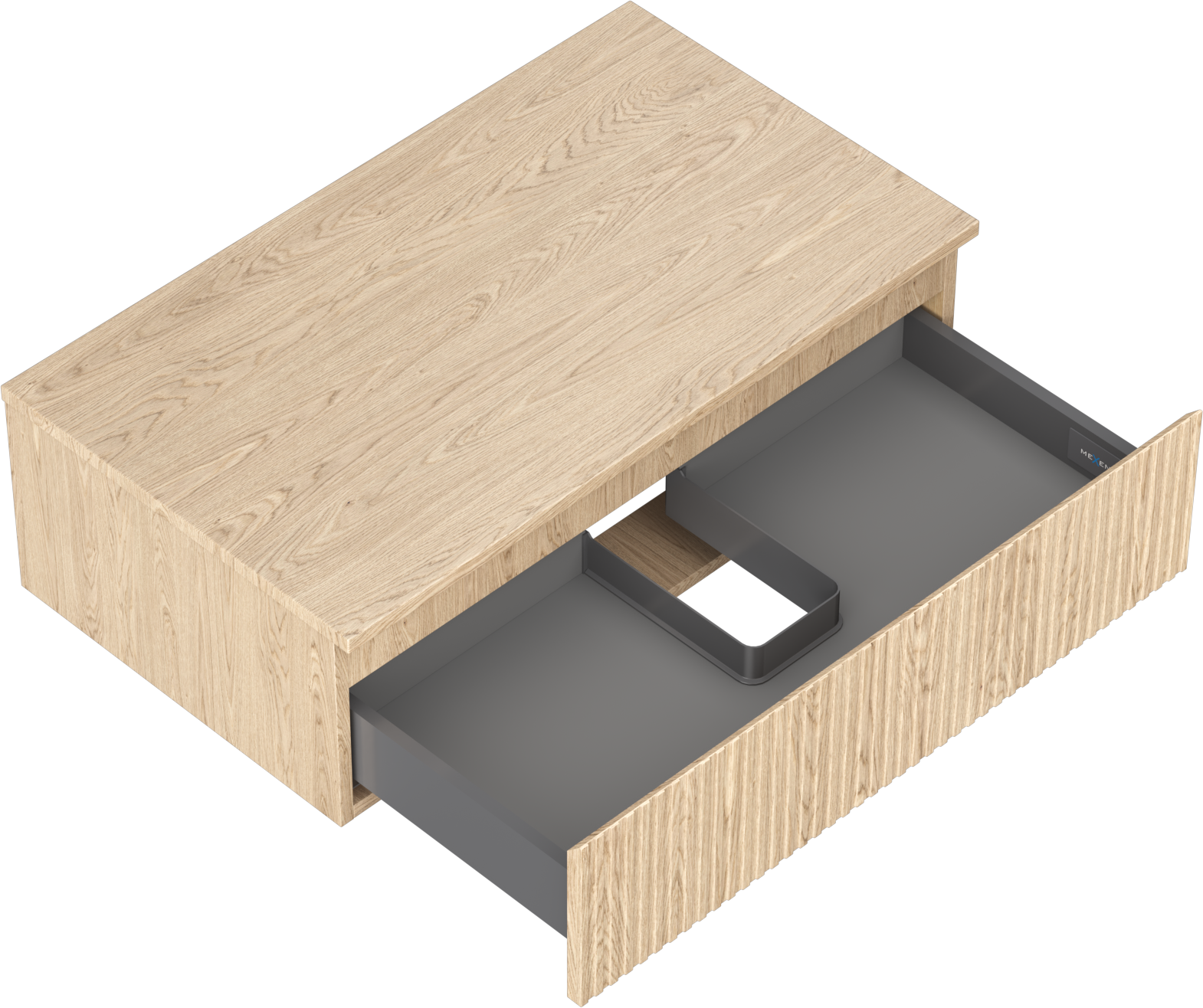 Изрезът в чекмеджето е проектиран по такъв начин, че да побере сифона, който е необходим в мивковите инсталации. Благодарение на това мебелът може да бъде монтиран напълно функционално, без да се налага отказване от пространството в чекмеджето заради инсталацията.
