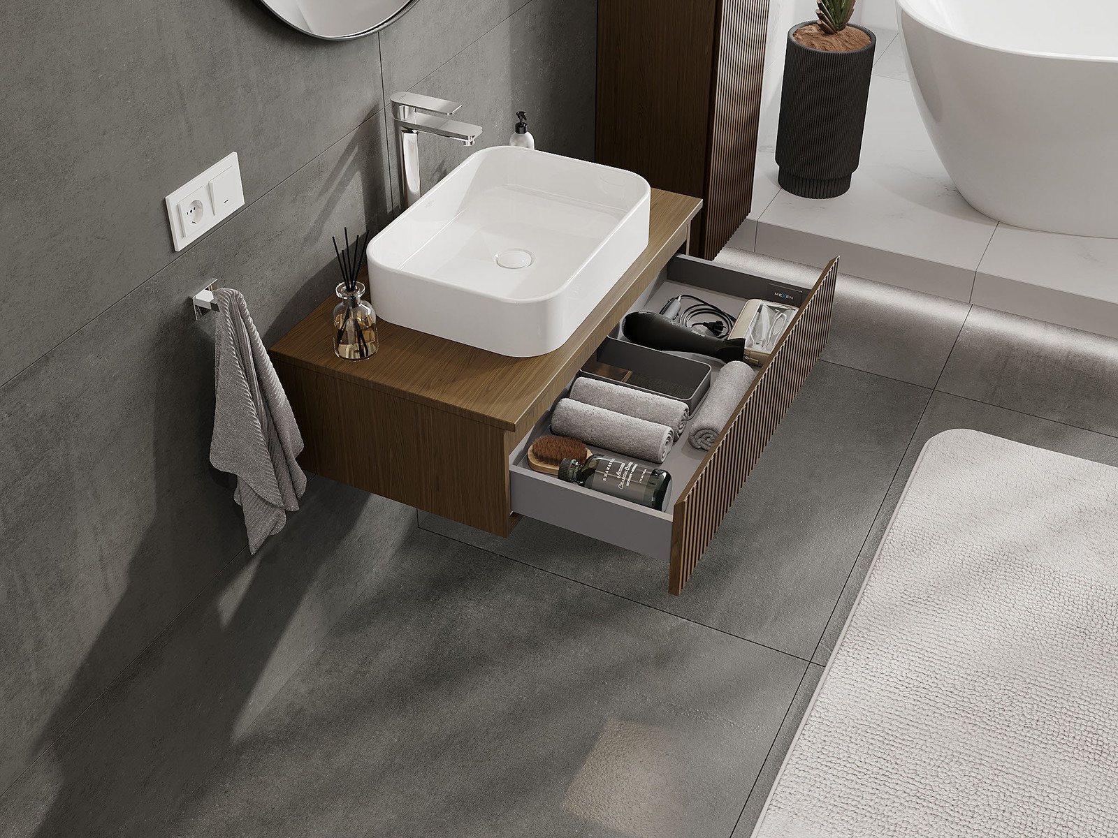 Нашите модулни мебели за баня могат да се комбинират в различни цветови конфигурации, което позволява пълна персонализация. Може да се избере както външният вид, така и функциите на отделните елементи, което позволява съчетаване на мебелите със собствените стилови и функционални предпочитания.