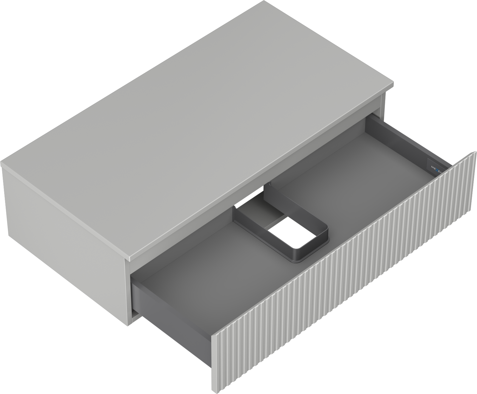 Изрезът в чекмеджето е проектиран по такъв начин, че да побере сифона, който е необходим в мивковите инсталации. Благодарение на това мебелът може да бъде монтиран напълно функционално, без да се налага отказване от пространството в чекмеджето заради инсталацията.