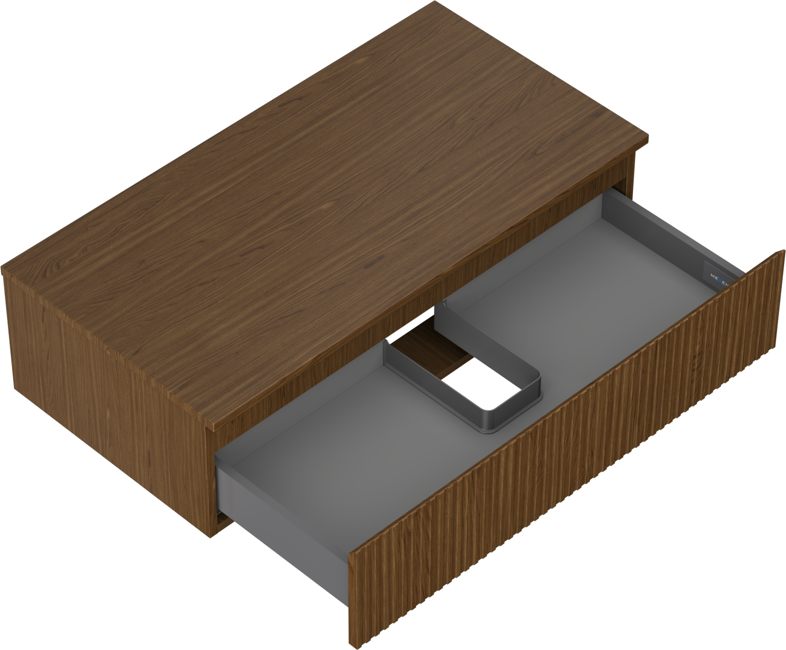 Изрезът в чекмеджето е проектиран по такъв начин, че да побере сифона, който е необходим в мивковите инсталации. Благодарение на това мебелът може да бъде монтиран напълно функционално, без да се налага отказване от пространството в чекмеджето заради инсталацията.