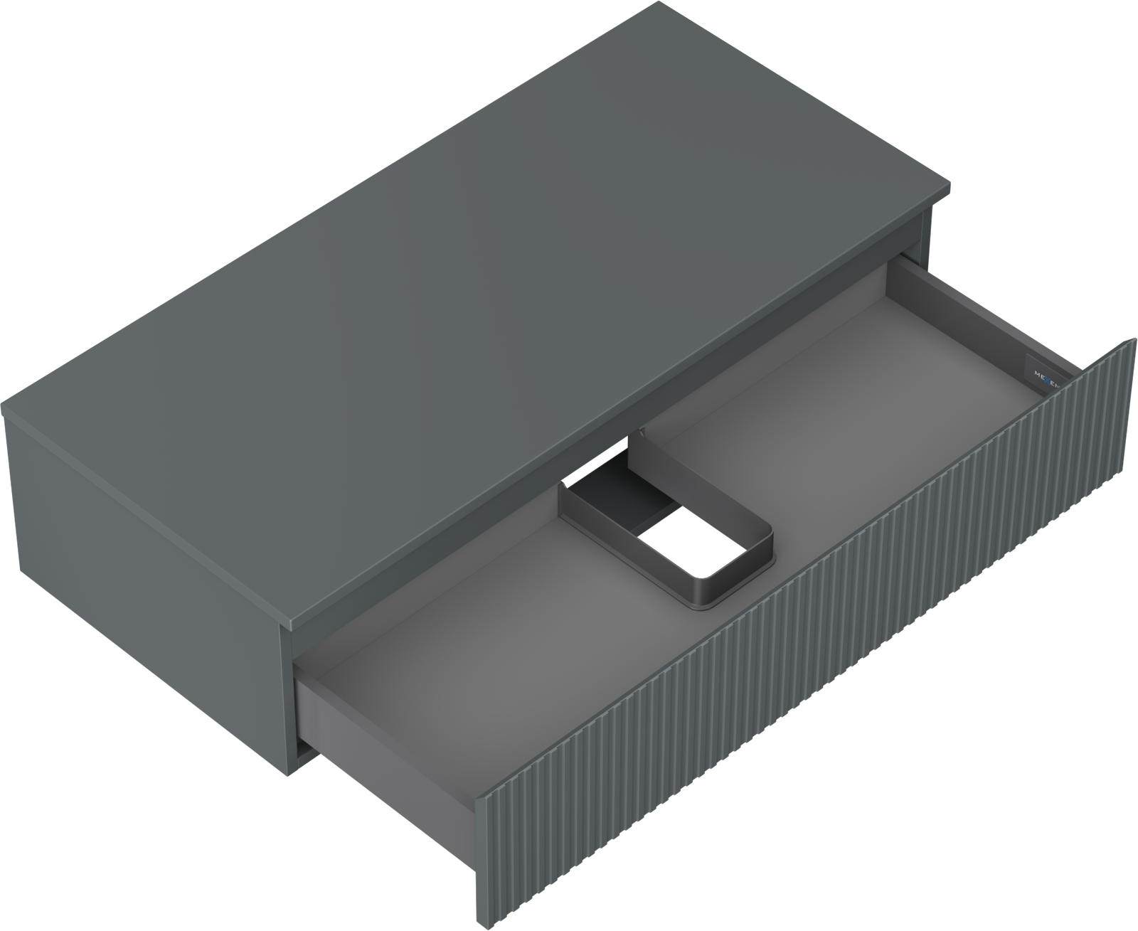 Изрезът в чекмеджето е проектиран по такъв начин, че да побере сифона, който е необходим в мивковите инсталации. Благодарение на това мебелът може да бъде монтиран напълно функционално, без да се налага отказване от пространството в чекмеджето заради инсталацията.