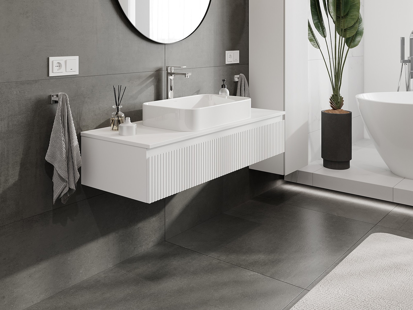 Корпусът на шкафа се доставя напълно сглобен, което означава максимално удобство и спестяване на време. Не е нужно да губите часове за сглобяване на мебела – просто го монтирайте на избраното място в банята. Това е идеалното решение за хора, които ценят бързия монтаж и незабавния ефект.