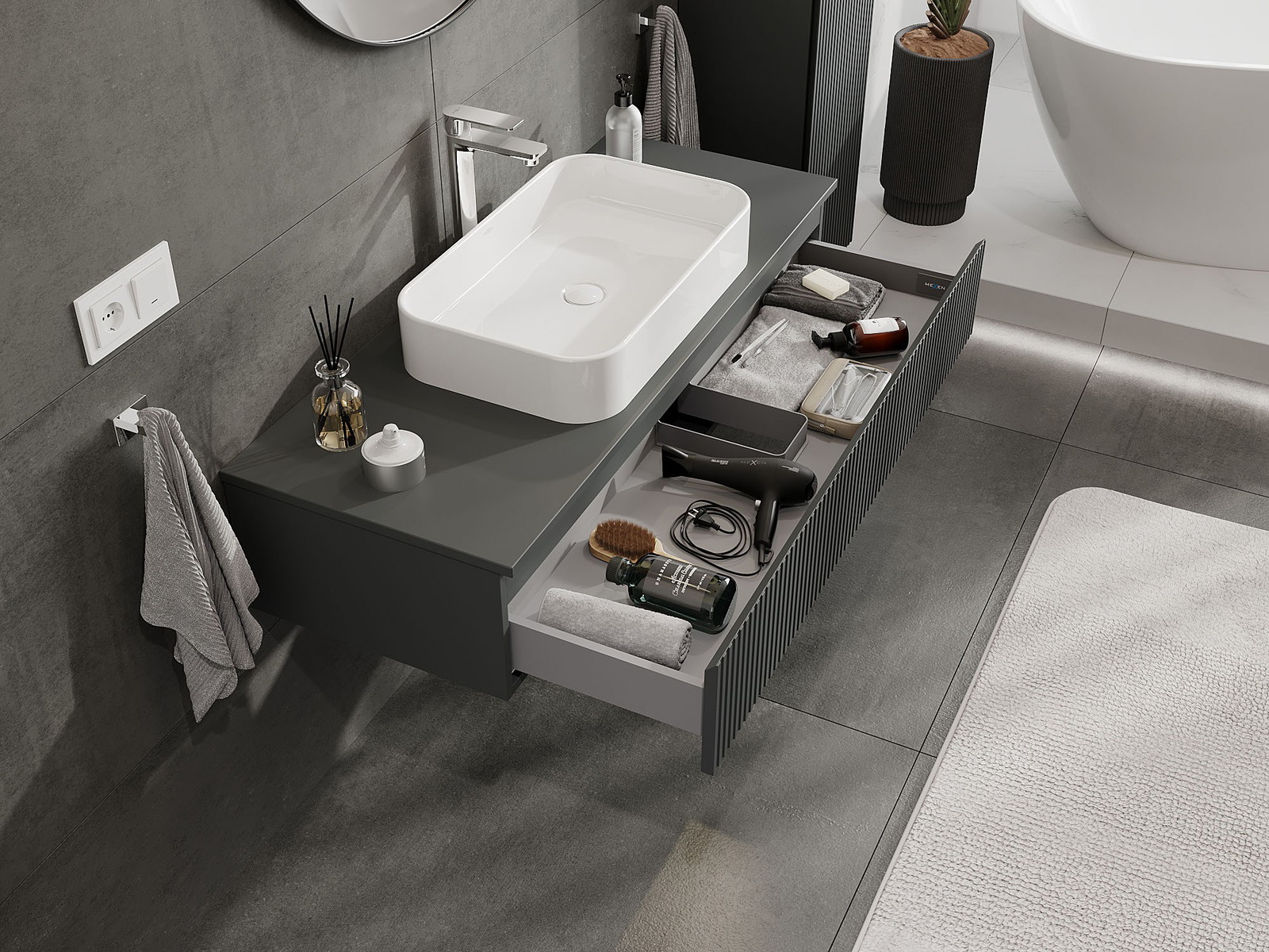 Нашите модулни мебели за баня могат да се комбинират в различни цветови конфигурации, което позволява пълна персонализация. Може да се избере както външният вид, така и функциите на отделните елементи, което позволява съчетаване на мебелите със собствените стилови и функционални предпочитания.