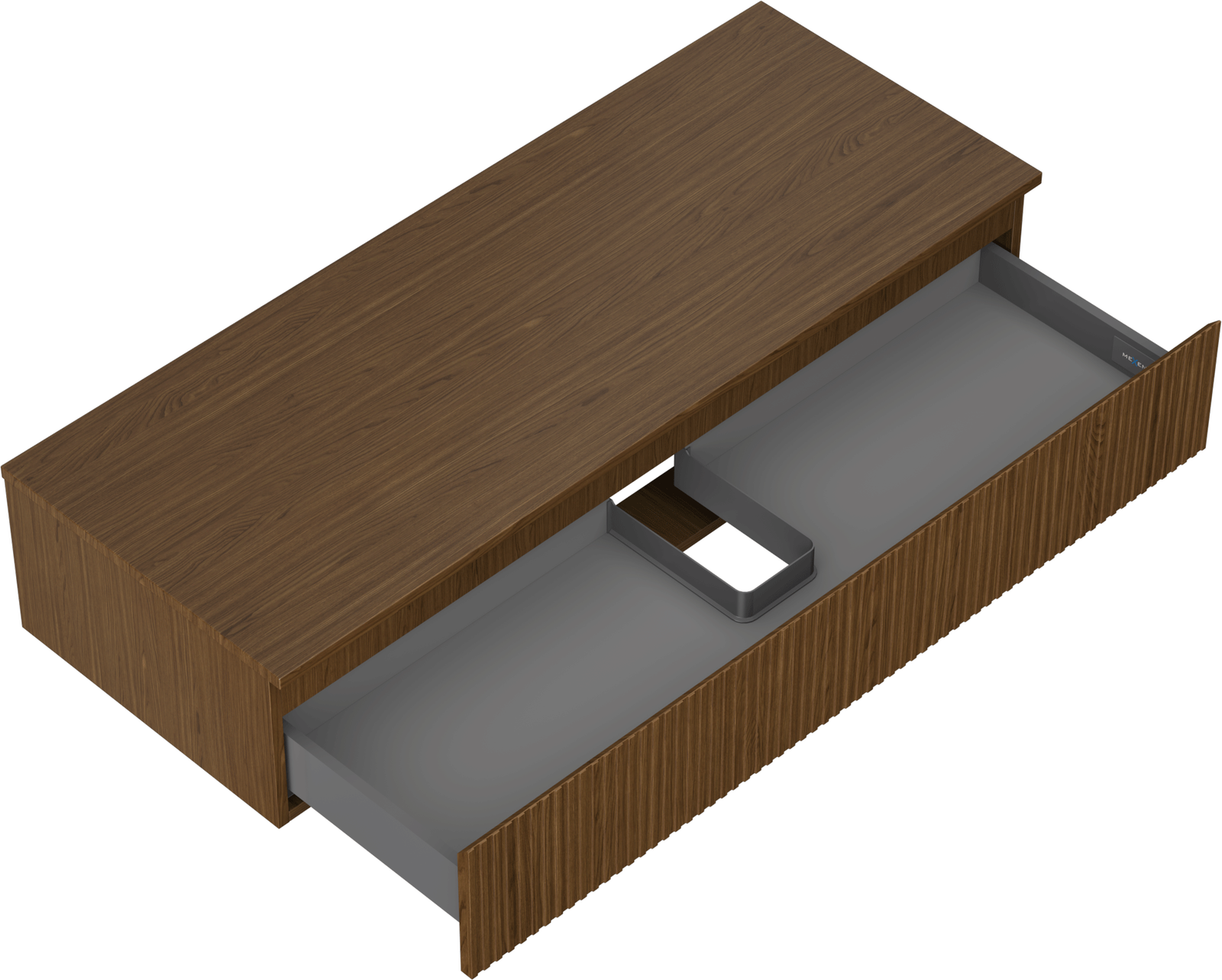 Изрезът в чекмеджето е проектиран по такъв начин, че да побере сифона, който е необходим в мивковите инсталации. Благодарение на това мебелът може да бъде монтиран напълно функционално, без да се налага отказване от пространството в чекмеджето заради инсталацията.