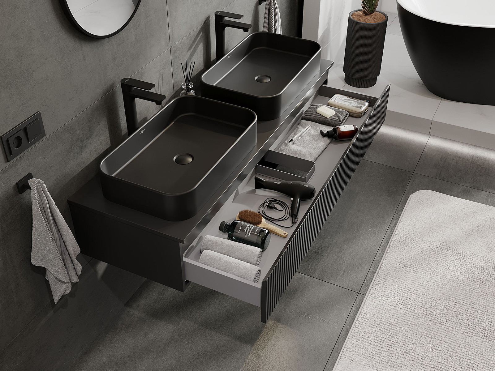 Нашите модулни мебели за баня могат да се комбинират в различни цветови конфигурации, което позволява пълна персонализация. Може да се избере както външният вид, така и функциите на отделните елементи, което позволява съчетаване на мебелите със собствените стилови и функционални предпочитания.