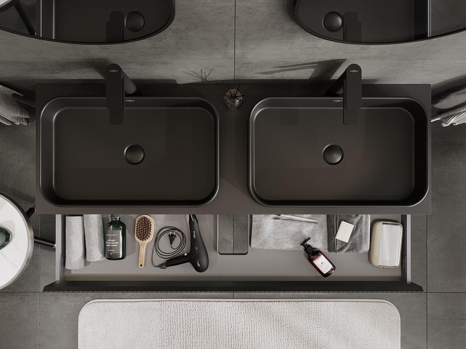 Изрезът в чекмеджето е проектиран по такъв начин, че да побере сифона, който е необходим в мивковите инсталации. Благодарение на това мебелът може да бъде монтиран напълно функционално, без да се налага отказване от пространството в чекмеджето заради инсталацията.