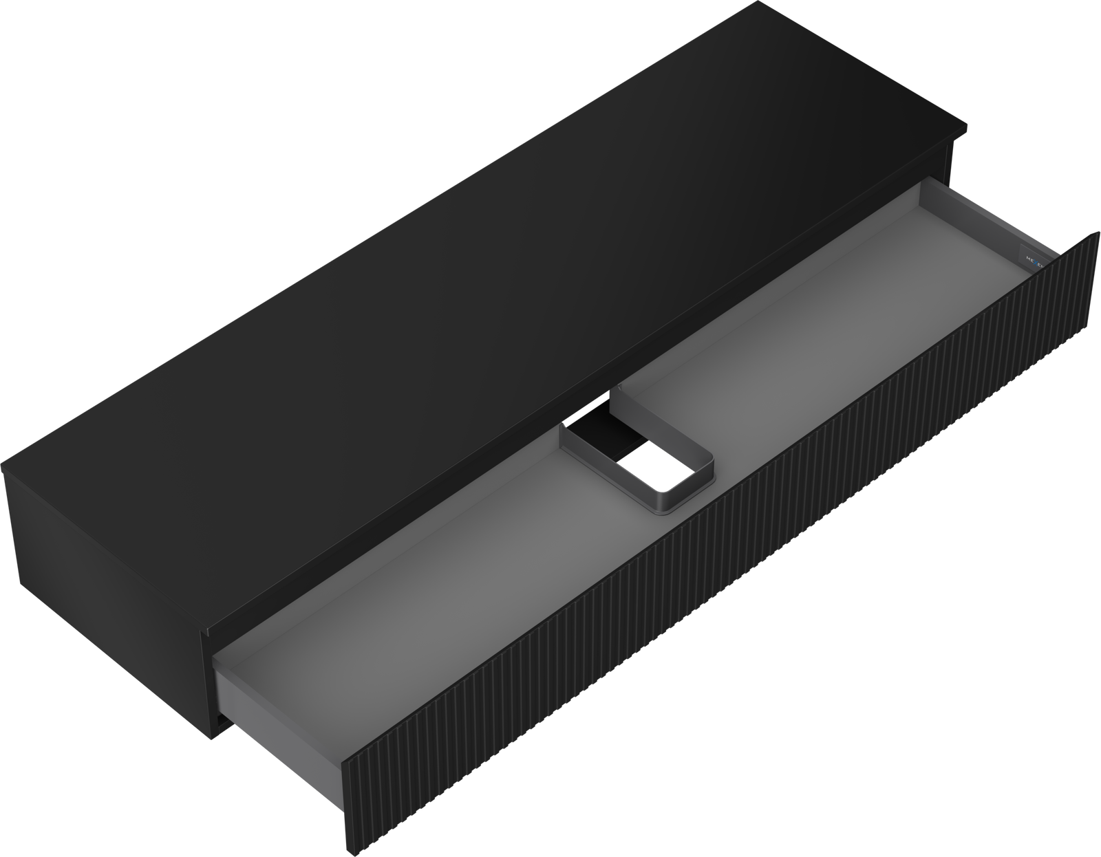 Изрезът в чекмеджето е проектиран по такъв начин, че да побере сифона, който е необходим в мивковите инсталации. Благодарение на това мебелът може да бъде монтиран напълно функционално, без да се налага отказване от пространството в чекмеджето заради инсталацията.