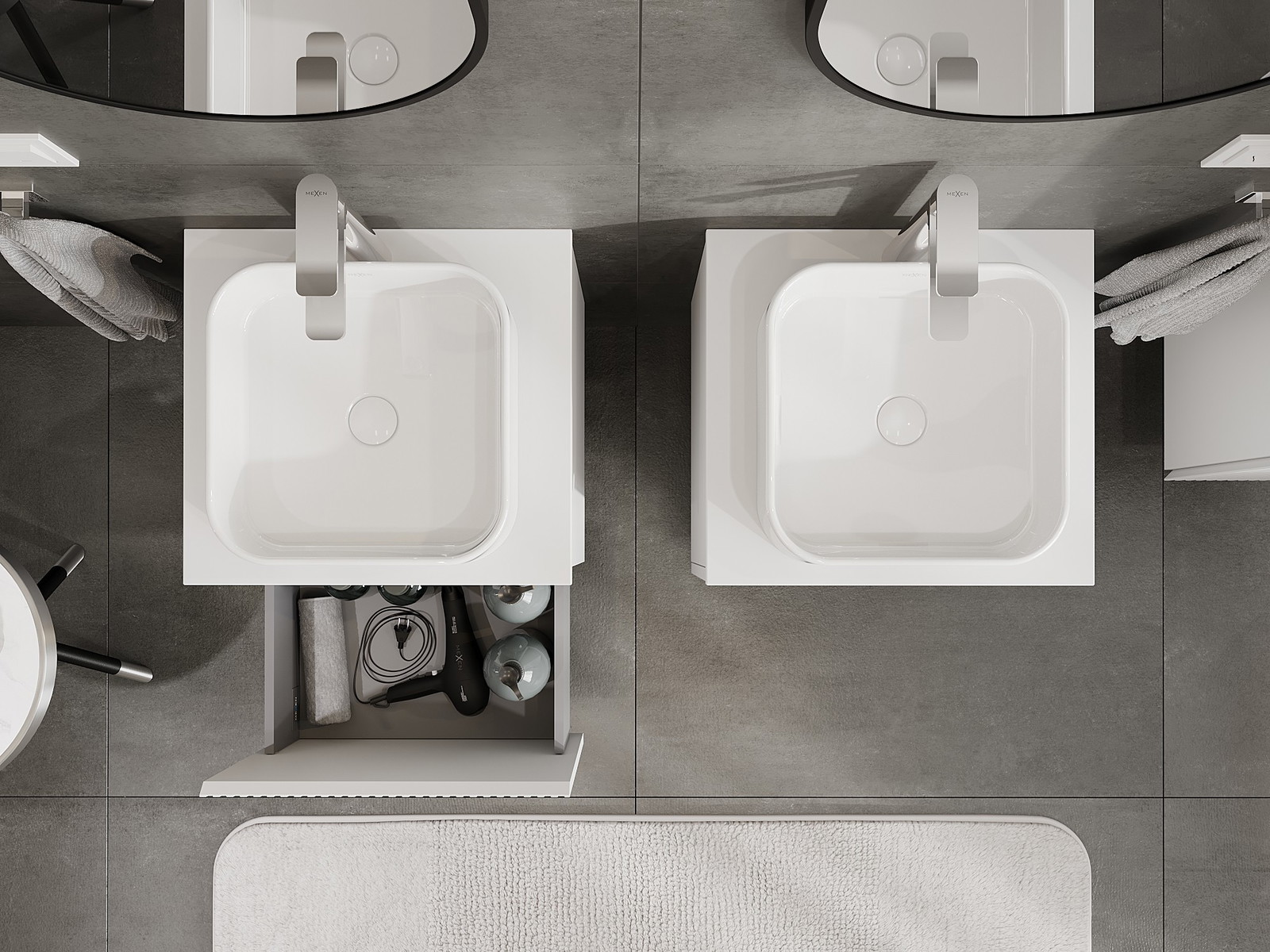Нашите модулни мебели за баня могат да се комбинират в различни цветови конфигурации, което позволява пълна персонализация. Може да се избере както външният вид, така и функциите на отделните елементи, което позволява съчетаване на мебелите със собствените стилови и функционални предпочитания.