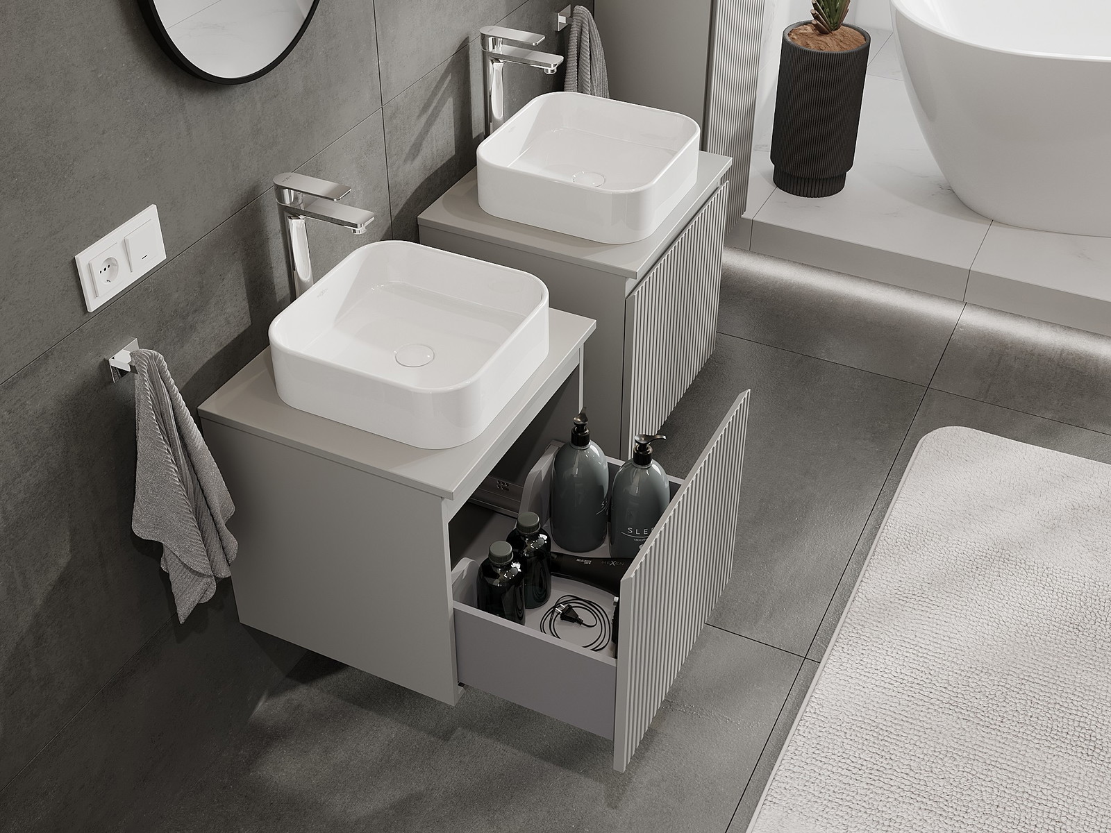 Mexen Rivel шкаф за баня под умивалник 50 см с плот, 1 чекмедже, гофриран, сив