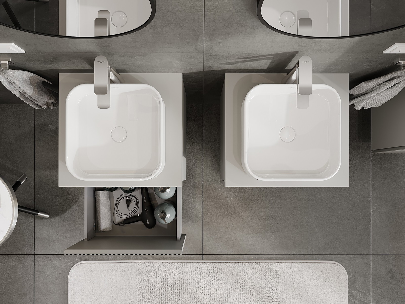 Нашите модулни мебели за баня могат да се комбинират в различни цветови конфигурации, което позволява пълна персонализация. Може да се избере както външният вид, така и функциите на отделните елементи, което позволява съчетаване на мебелите със собствените стилови и функционални предпочитания.