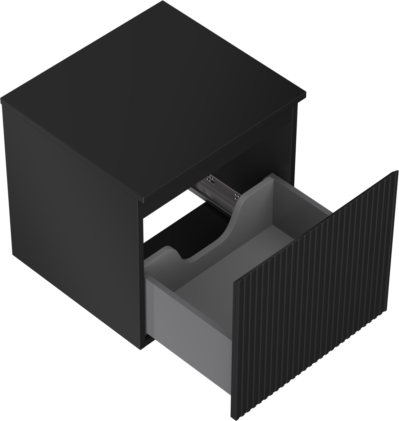Изрезът в чекмеджето е проектиран по такъв начин, че да побере сифона, който е необходим в мивковите инсталации. Благодарение на това мебелът може да бъде монтиран напълно функционално, без да се налага отказване от пространството в чекмеджето заради инсталацията.