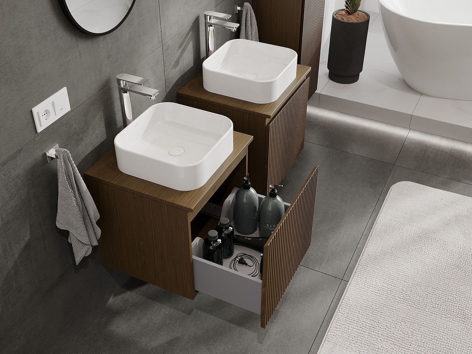 Нашите модулни мебели за баня могат да се комбинират в различни цветови конфигурации, което позволява пълна персонализация. Може да се избере както външният вид, така и функциите на отделните елементи, което позволява съчетаване на мебелите със собствените стилови и функционални предпочитания.