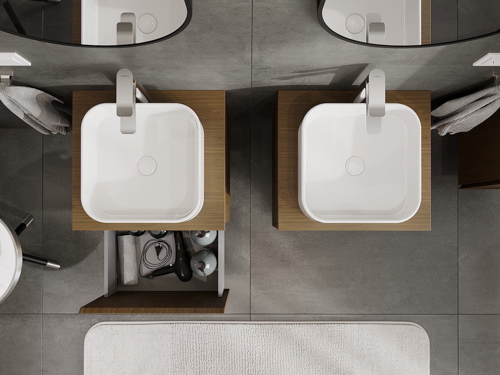 Mexen Rivel баня шкаф за мивка 50 см с плот, 1 чекмедже, рифлена, орех - 91A20-05047-1-BFC86
